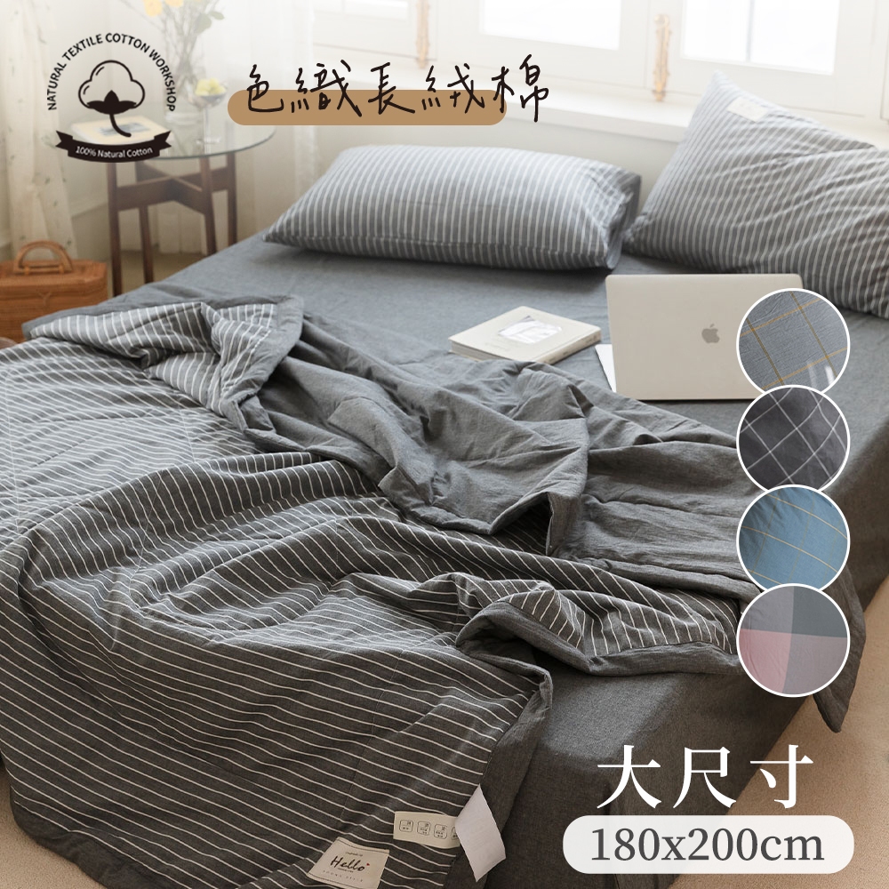 「Belle Vie」色織長絨棉 純棉雙人防涼四季被 薄被【180X200cm】多款任選 可水洗涼被 雙人被 簡約無印風