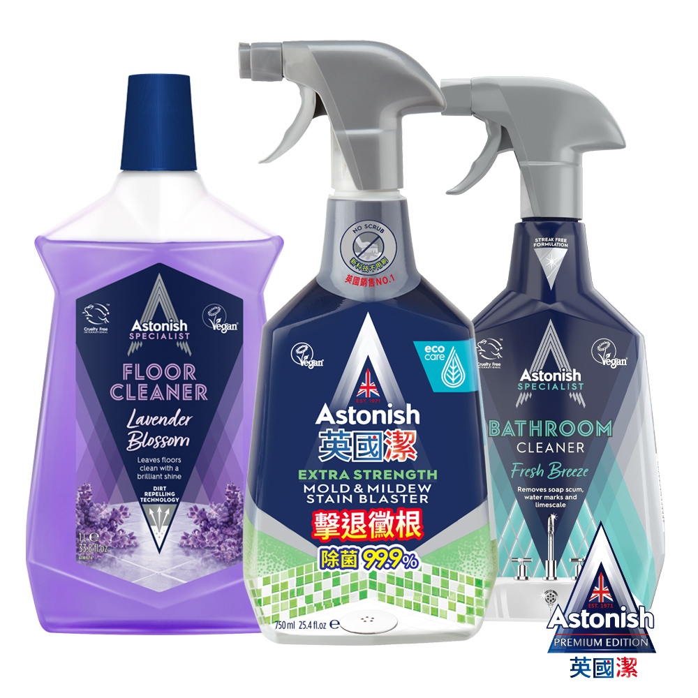 【Astonish】英國潔浴廁光滑晶亮組(除黴+浴廁+地板清潔)除黴+浴廁+地板(薰衣草)|除黴+浴廁+地板(檸檬)|除黴+浴廁+地板(牡丹Cleaning AgentsAstonish 英國潔|官方台灣總代理