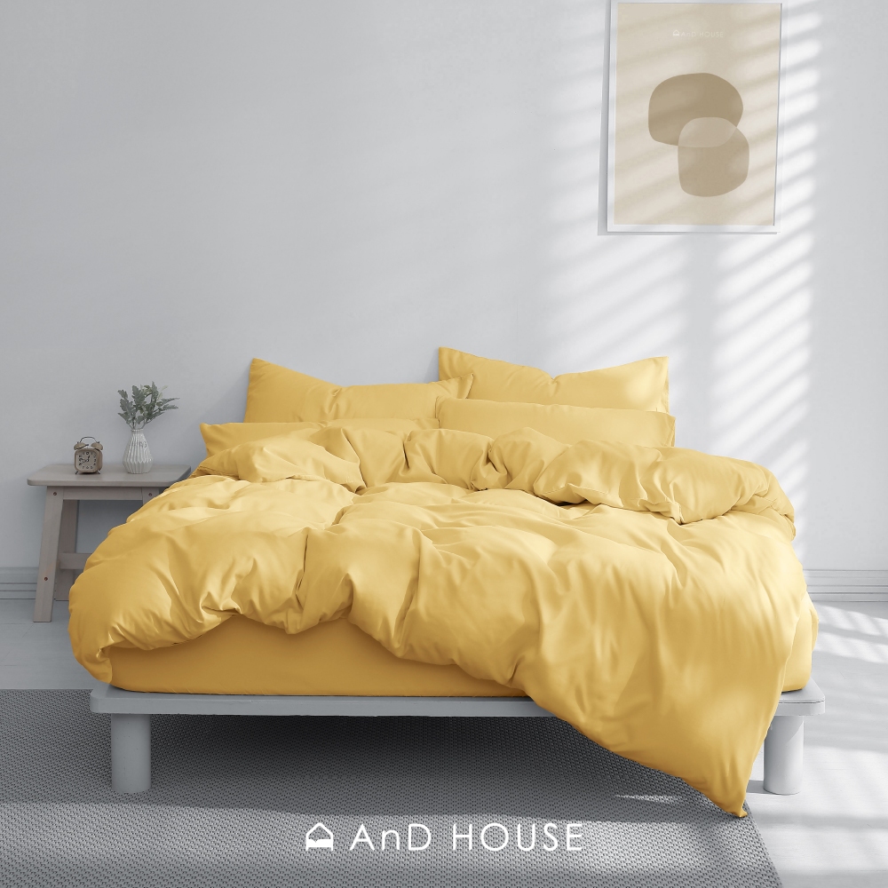 AnD House 舒柔棉-芥黃色 ✖ 淺駝色 雙色配-床包被套組|安庭家居 素色 混搭