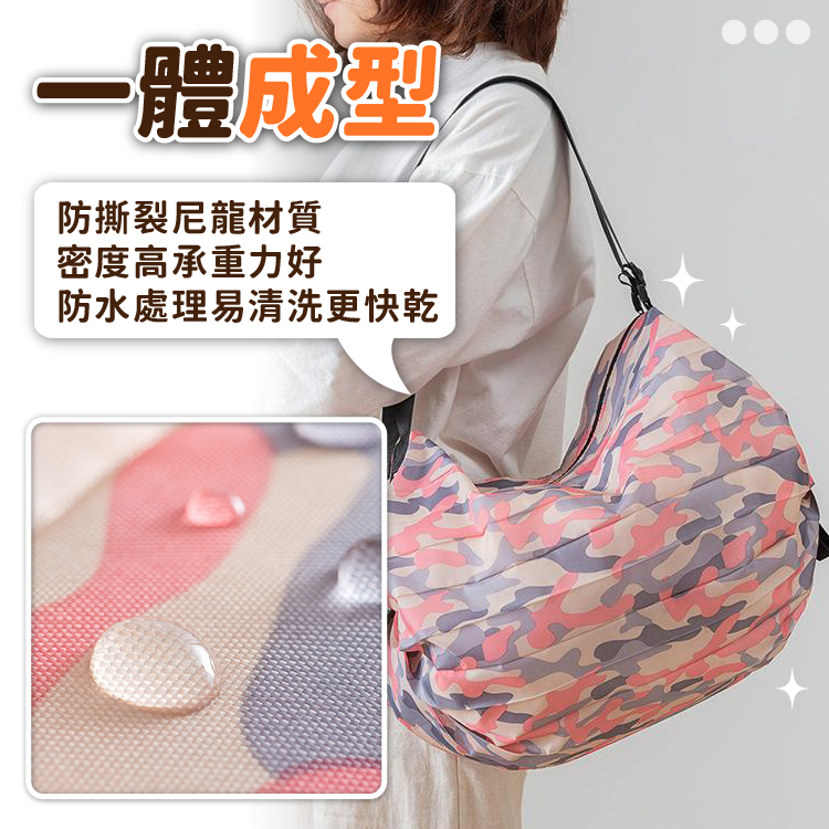 折疊收納袋 環保購物袋 收納袋 購物袋 環保袋 環保包 側背包 肩背包 提袋 手提袋 可水洗【小麥購物】【G615】粉色迷彩|彩色方格|斑馬紋|菱形愛心|黑豹紋|酷炫黑|藏青色|軍綠迷彩 小麥購物