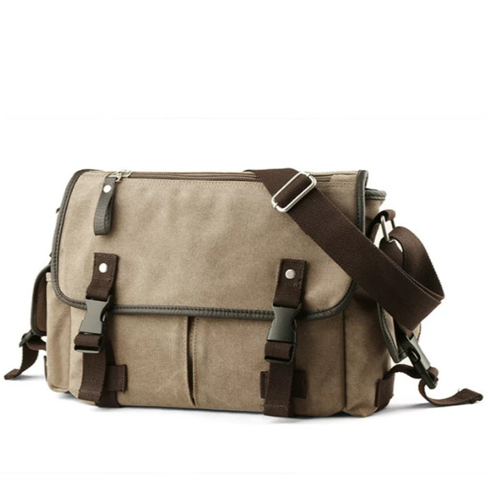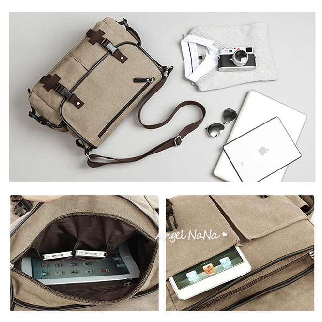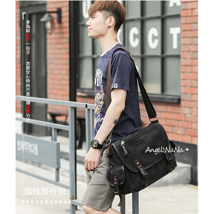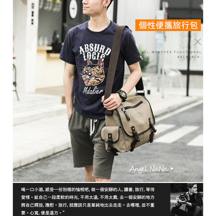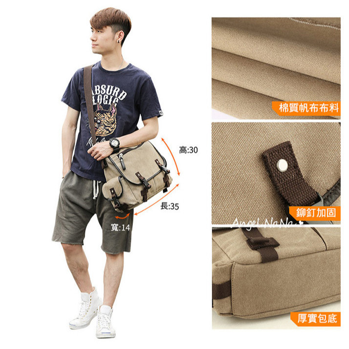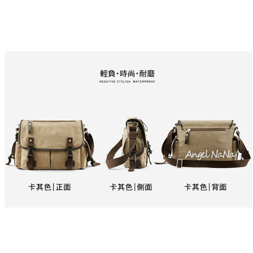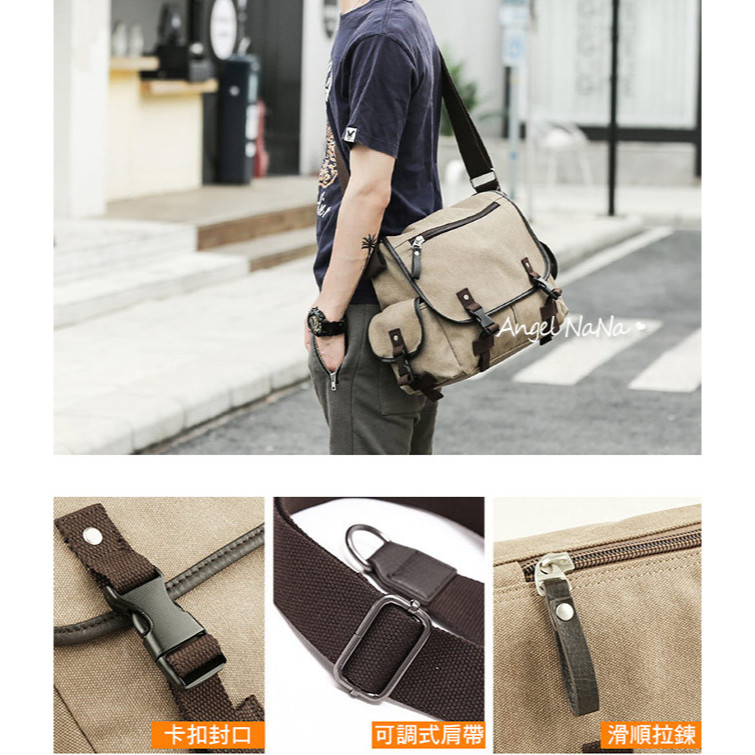 【AngelNaNa】郵差包-韓網簡約率性帆布斜背包翻蓋包男女中性背包(可放A4)(SBA0419)卡其色|黑色AngelNaNa官方旗艦店