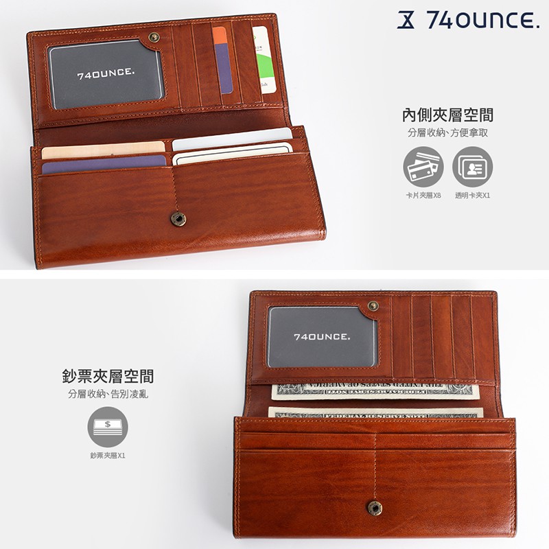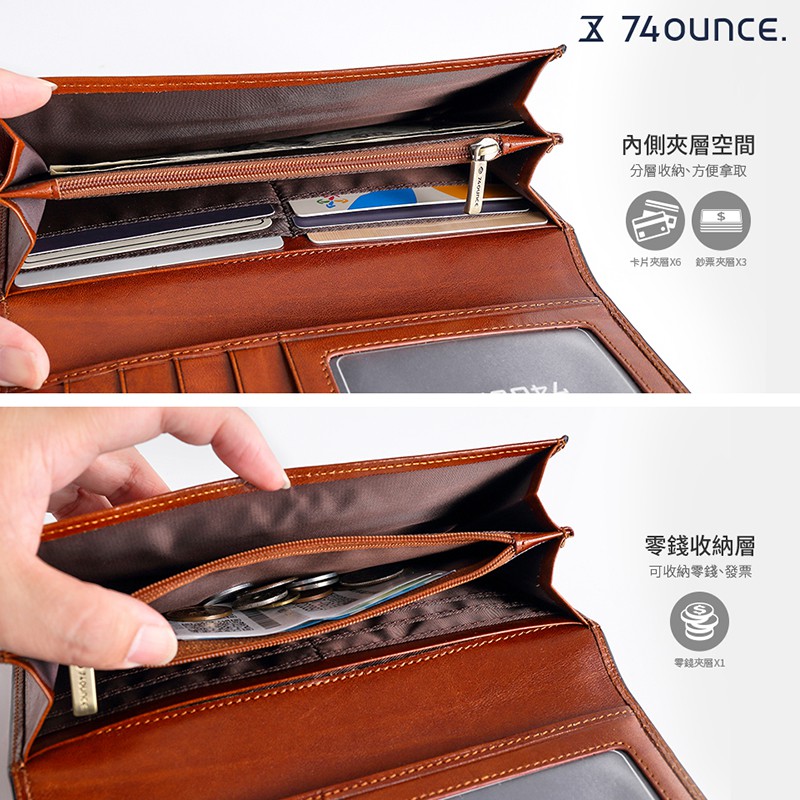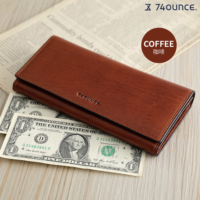 74ounce 經典義大利皮革中性簡約設計皮夾送禮 Maroon馬鞍皮翻蓋手拿長夾[N-511]現貨 咖啡咖啡Long Wallets74ounce