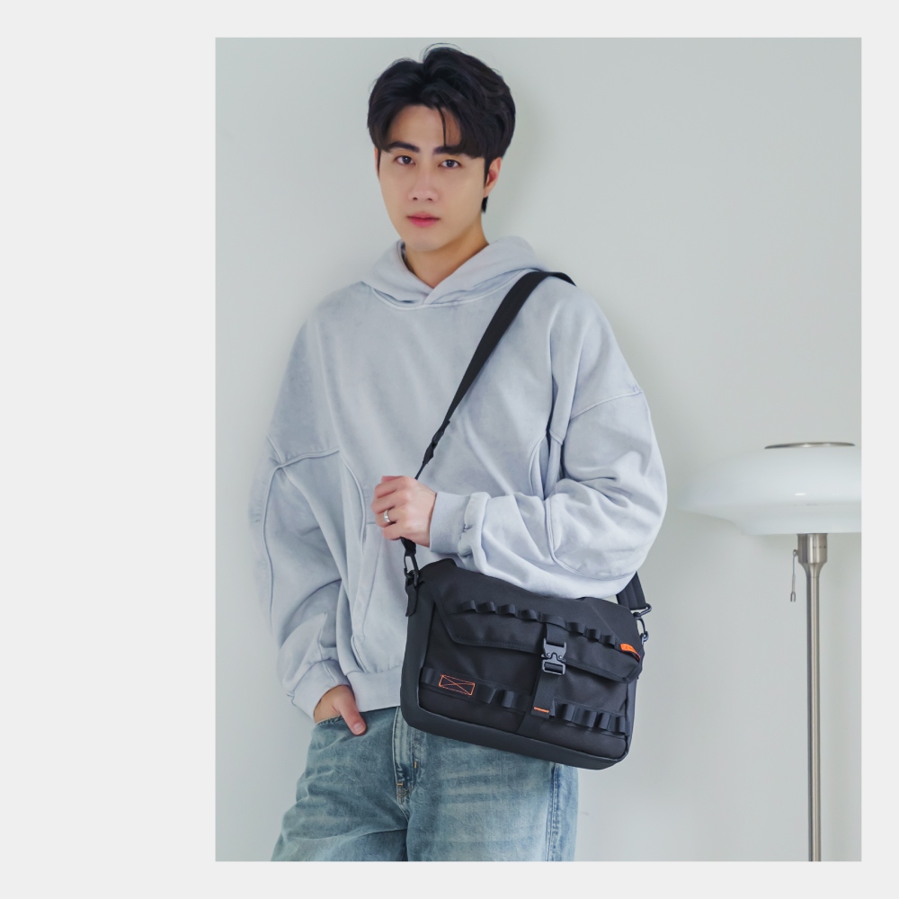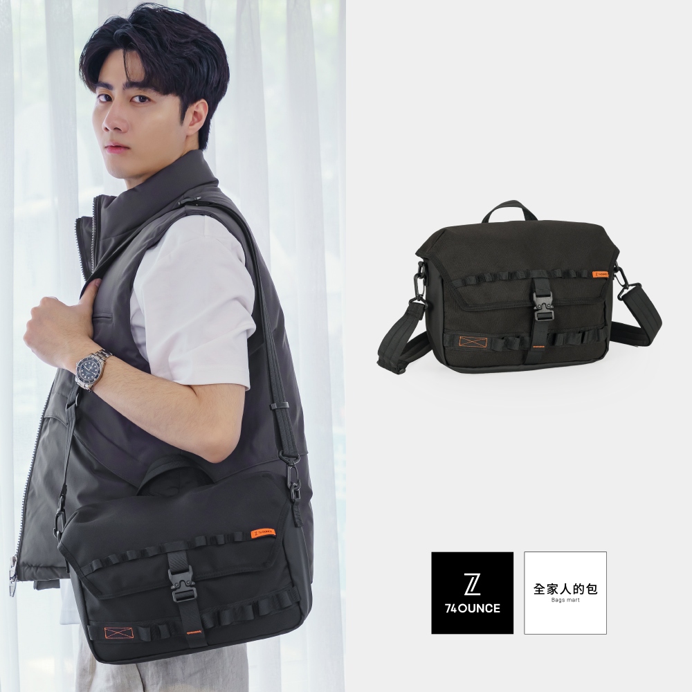 74ounce 台灣設計品牌 輕野探索翻蓋側背包防潑水尼龍斜背包多夾層設計包包[G-1170-Q1-M]黑74ounce