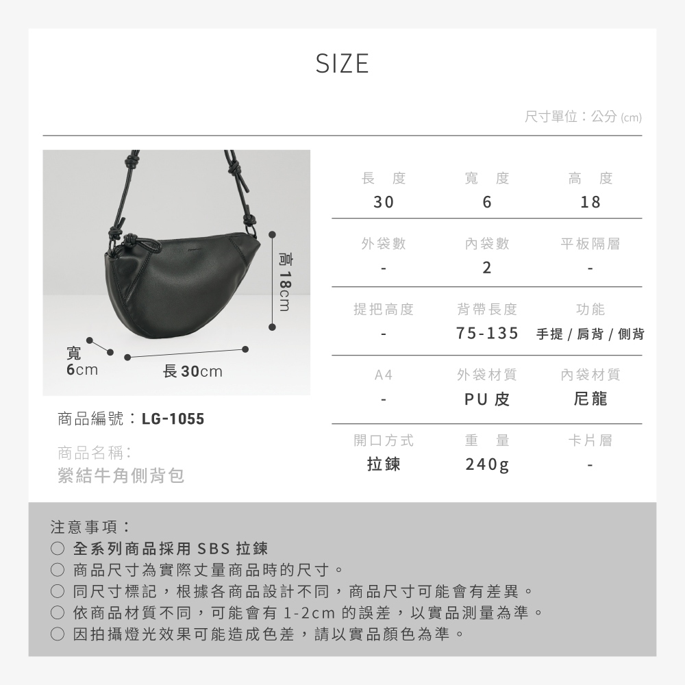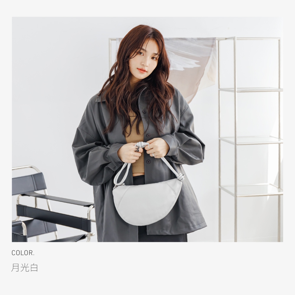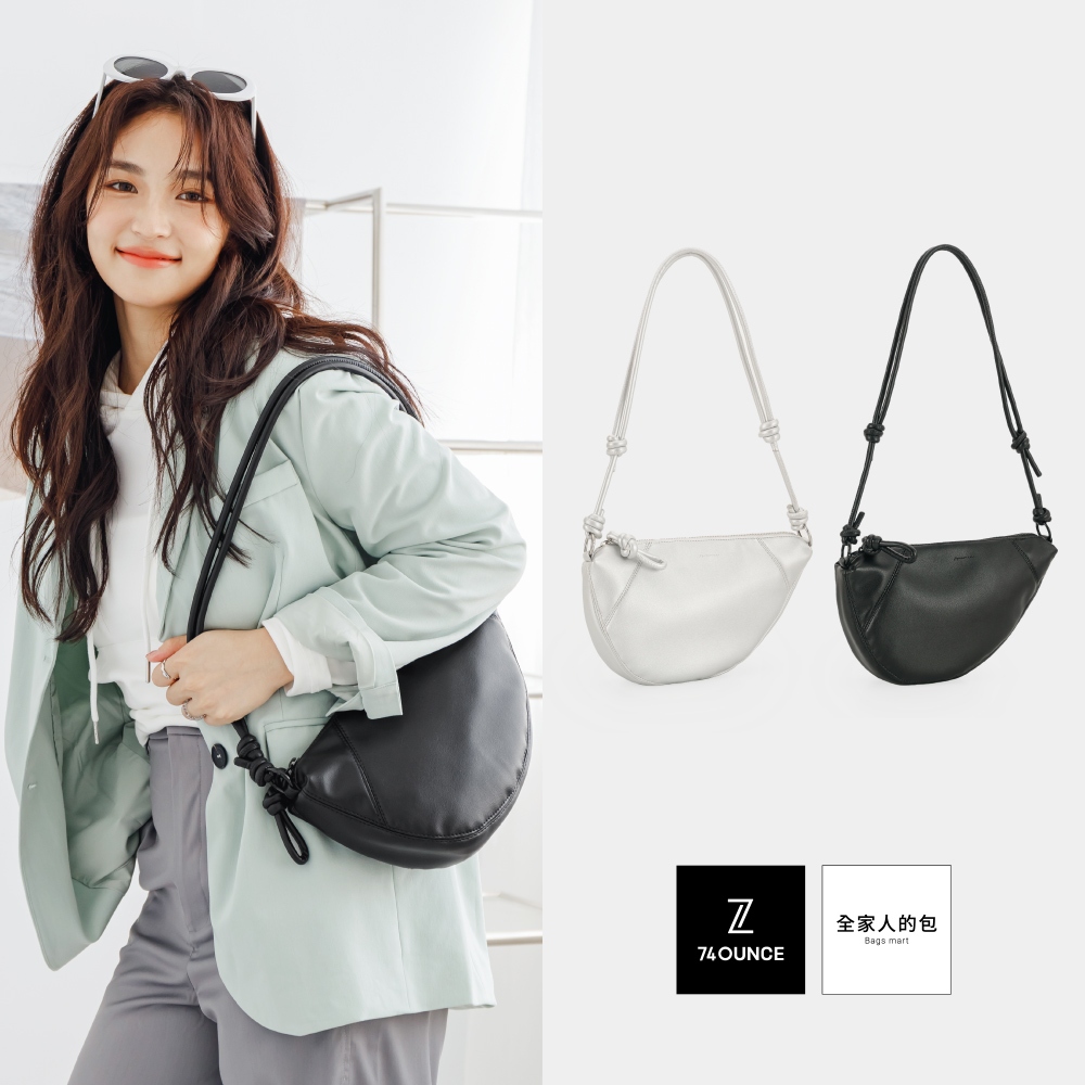 74ounce 縈結牛角側背包[LG-1055-Q1-W]半月月牙斜背包穿搭有型貼身設計月光白|黑74ounce