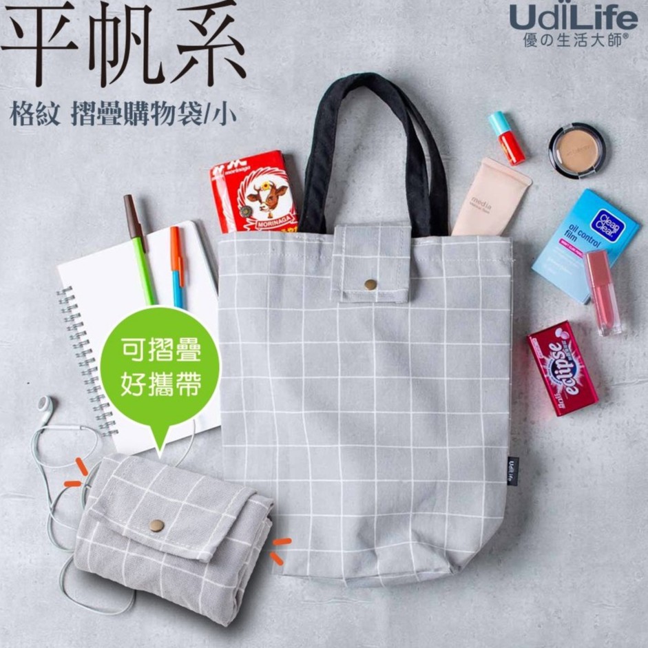 【UDiLiFE】平帆系 折疊格紋帆布袋(小) 日係帆布袋 手提帆布包 帆布託特包 大帆布包 休閒包黑色|灰色【UDiLiFE】優的生活大師《官方旗艦館》