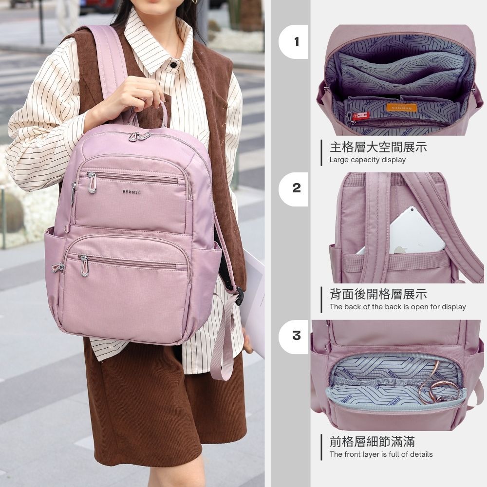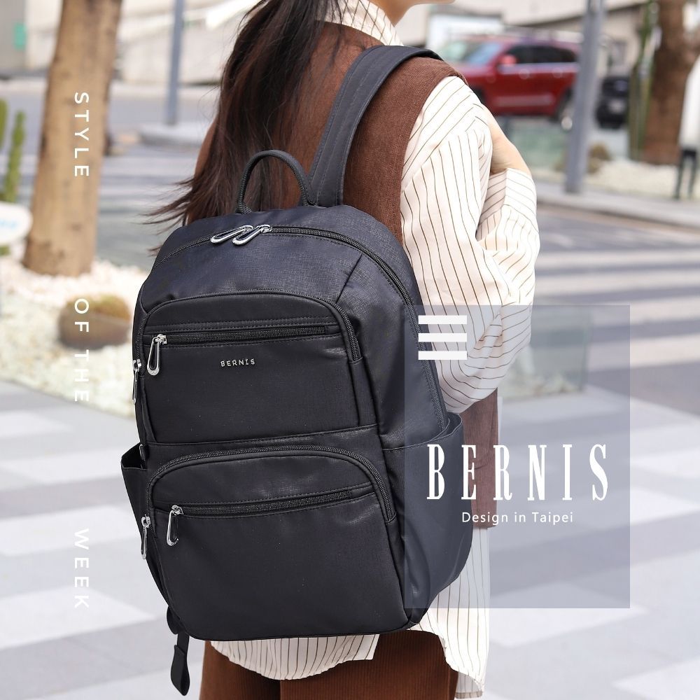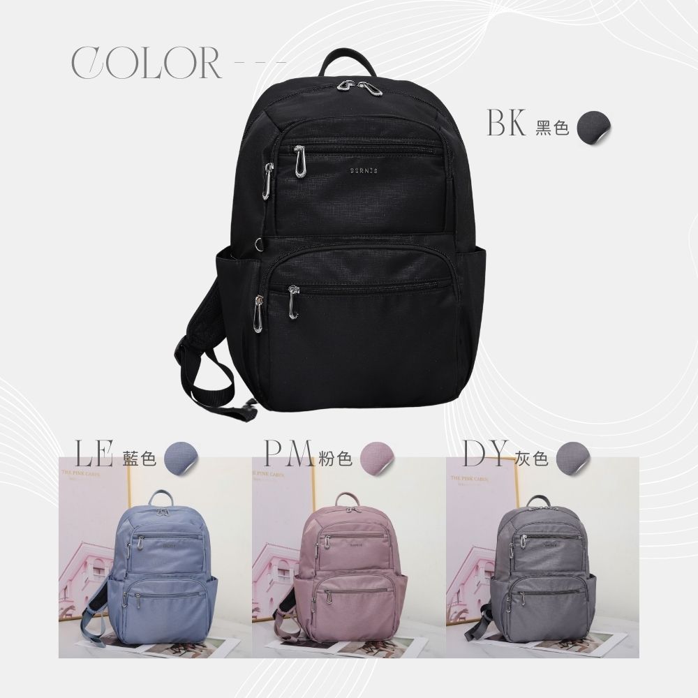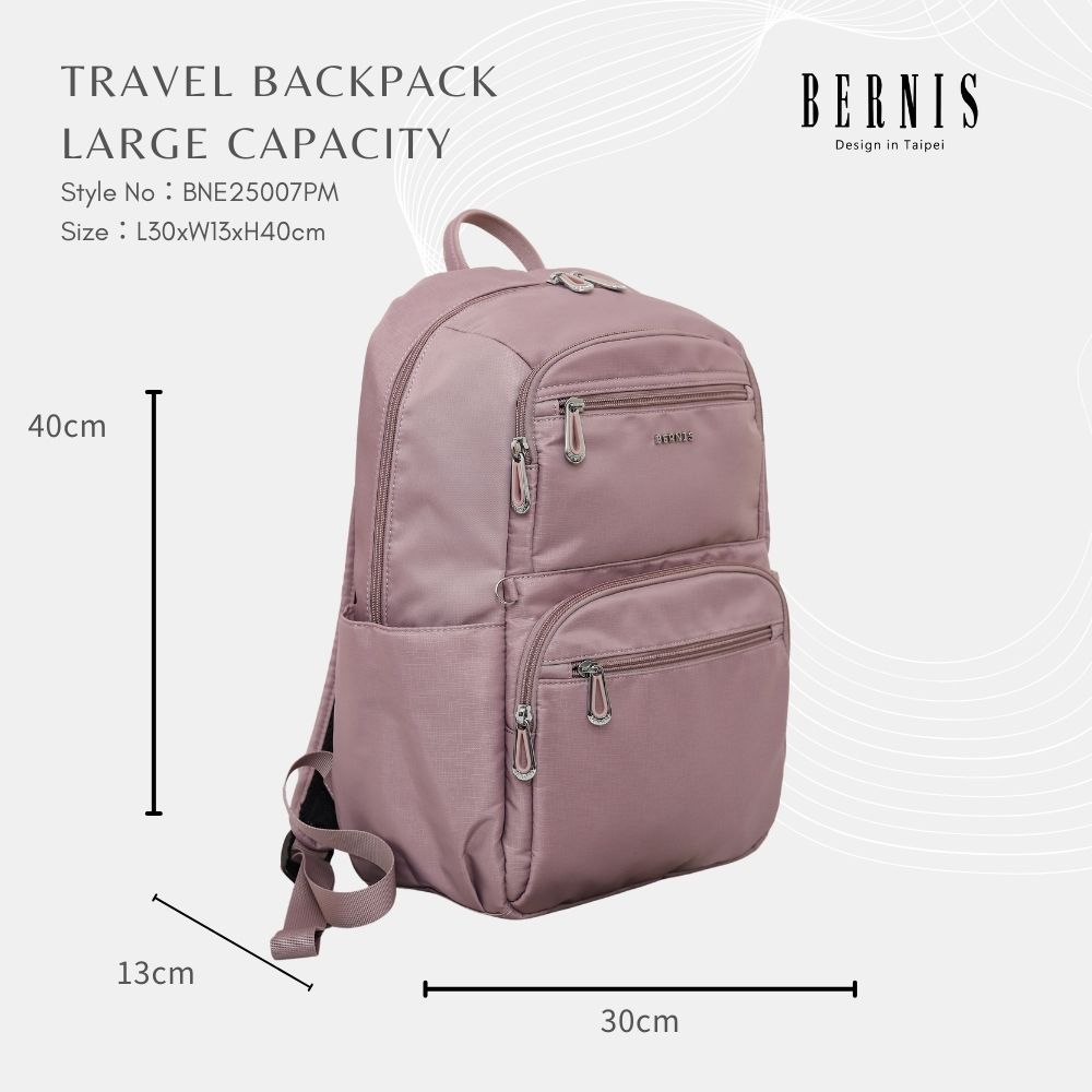 BERNIS 細絲尼龍 大容量RFID旅行後背包 多色任選 (BNE25007) 雙肩 單肩 電腦包 書包 背包BK黑色|PM粉色|LE藍色|DY灰色|深藍BERNIS貝爾尼斯皮件