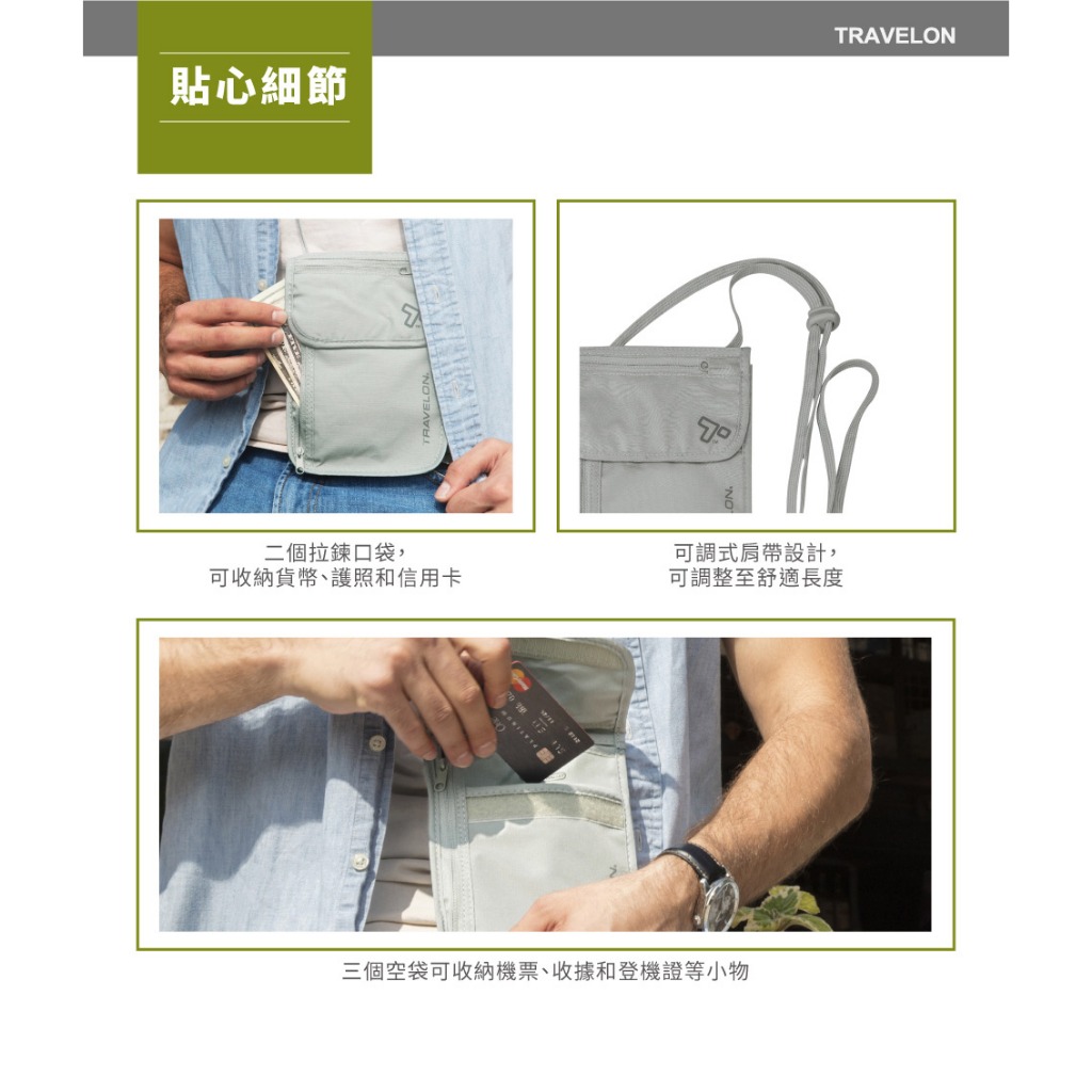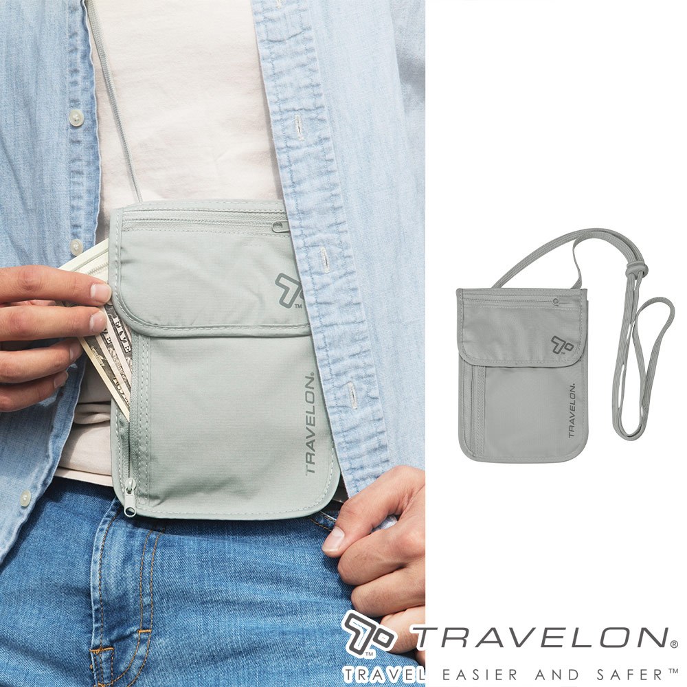 【Travelon美國防盜包】RFID BLOCKING隱藏式錢包TL-12998灰/出國旅遊/貼身隨行包/掛頸式灰Coin Holders & PursesATUNAS 歐都納 官方直營