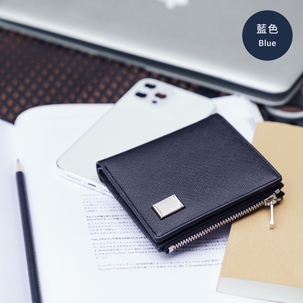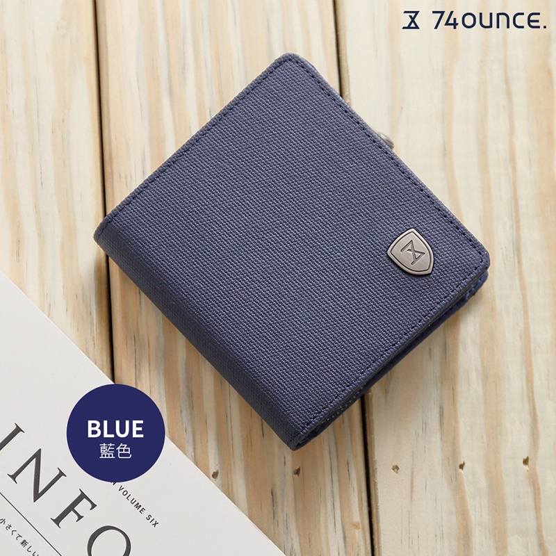 74ounce Cross 十字紋真皮扣式零錢短夾[N-632-CR-M]現貨藍色藍Bifold & Trifold Wallets74ounce