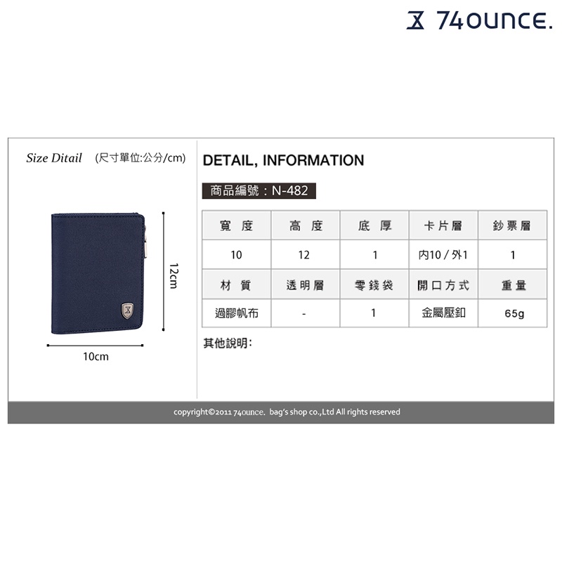 74ounce FIT 時尚拉鍊對折短夾[N-482-FI]過膠帆布.防潑水黑|藍|咖啡Bifold & Trifold Wallets74ounce