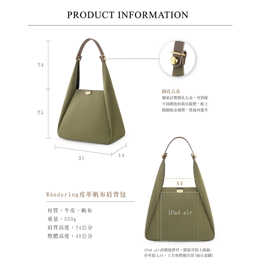 【ADOLE】Wàndering皮革帆布肩背包/橄欖綠│放得下iPad plus、水壺、折疊傘│客製刻印紅色|胭粉|綠色|黑色|摩卡|可可|蜜糖棕|橘棕ADOLE