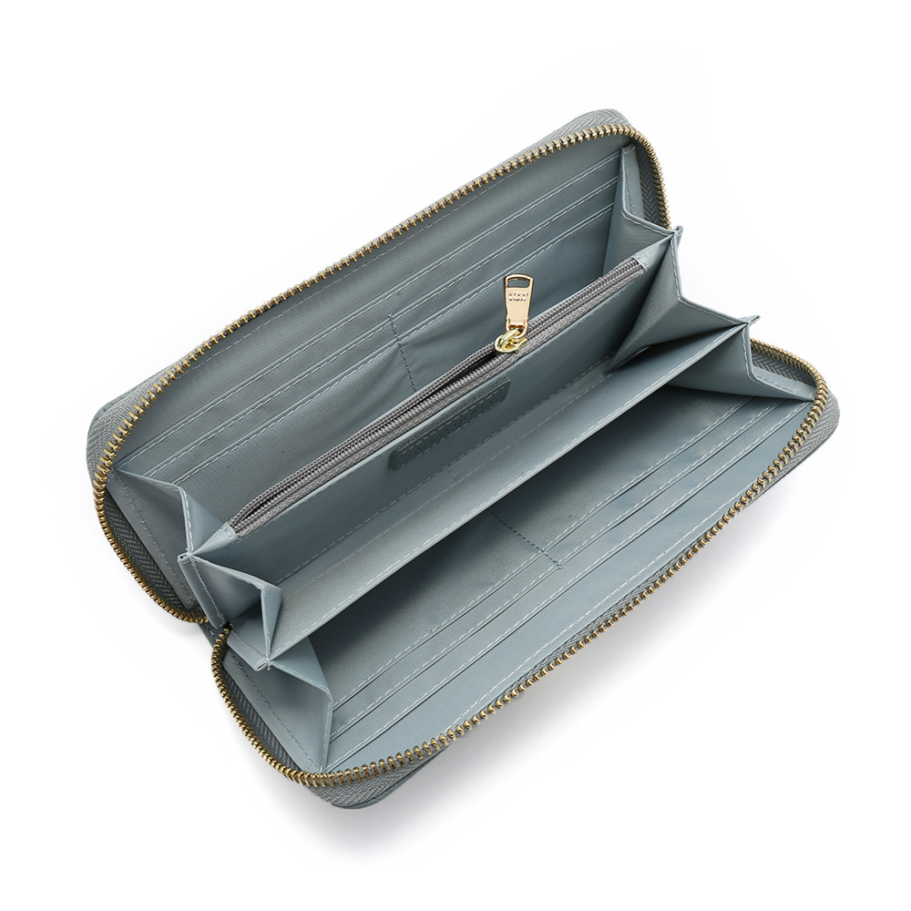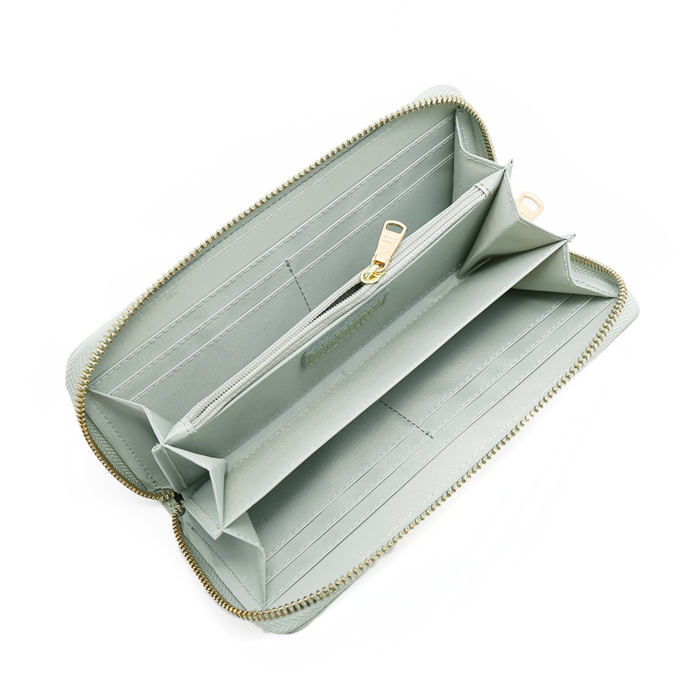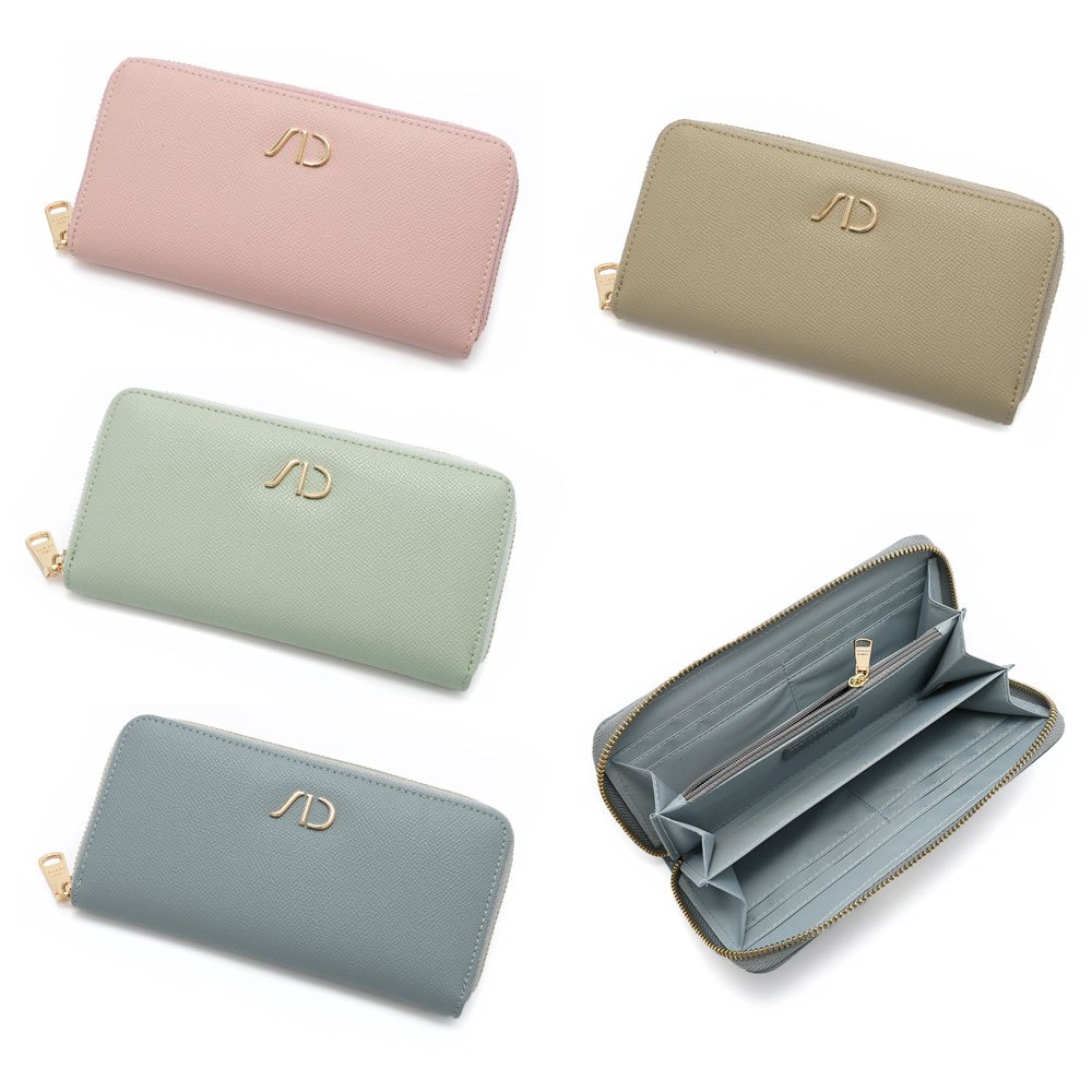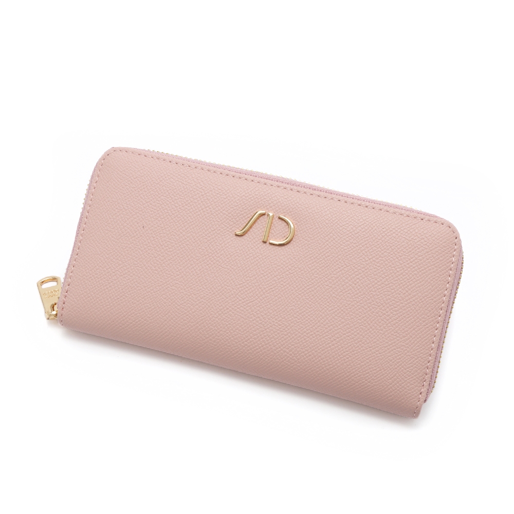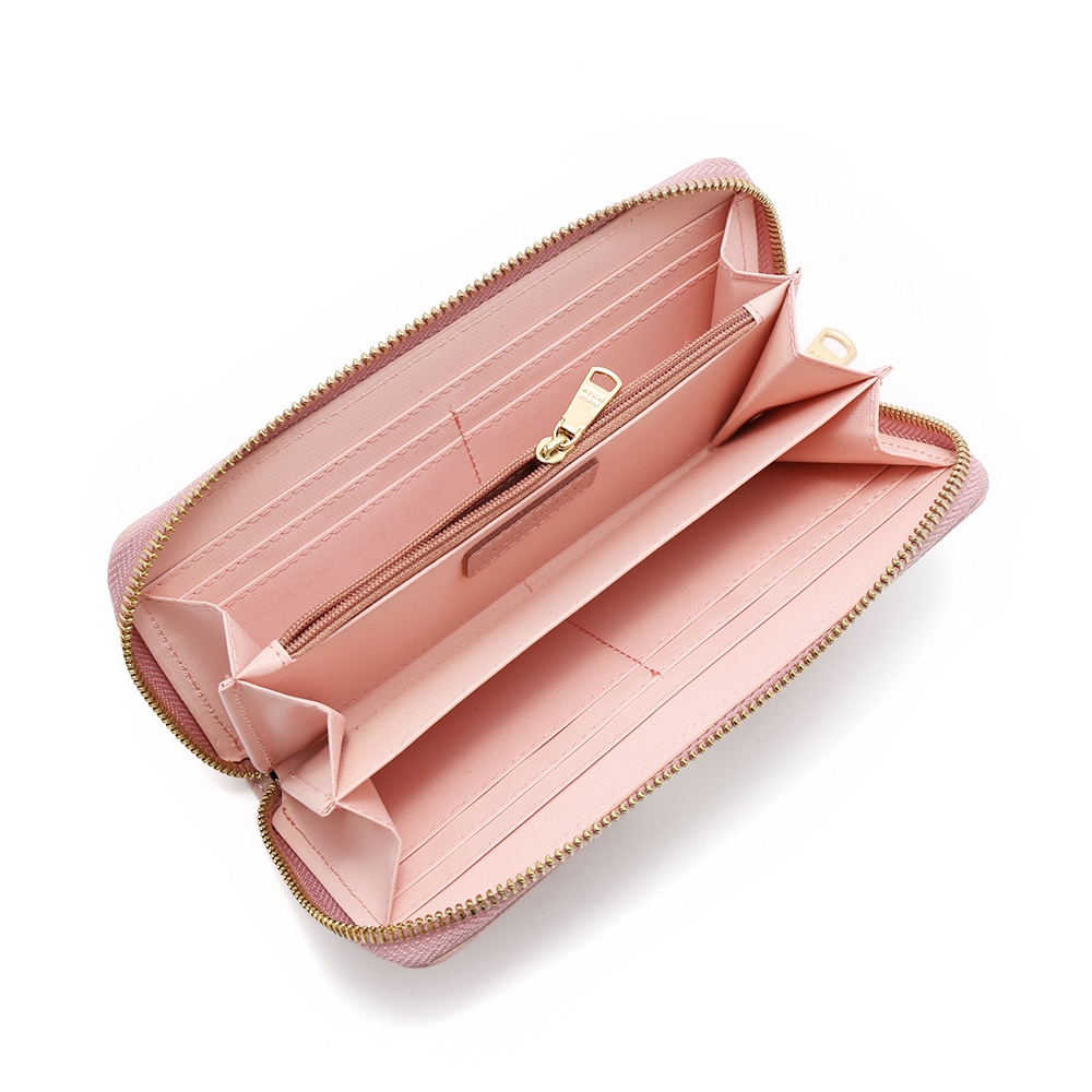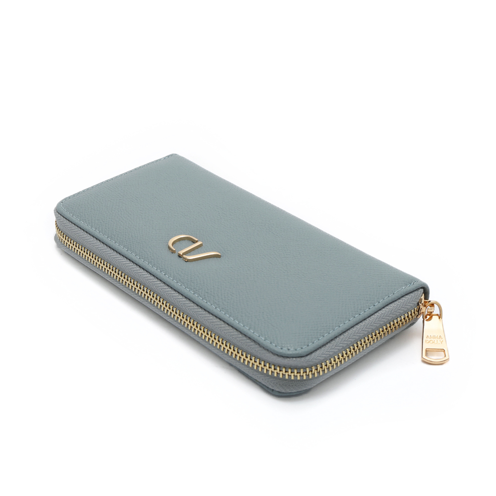 ANNA DOLLY 品牌掌紋真皮拉鍊長夾粉色|藍色|綠色|杏色Long WalletsANNA DOLLY