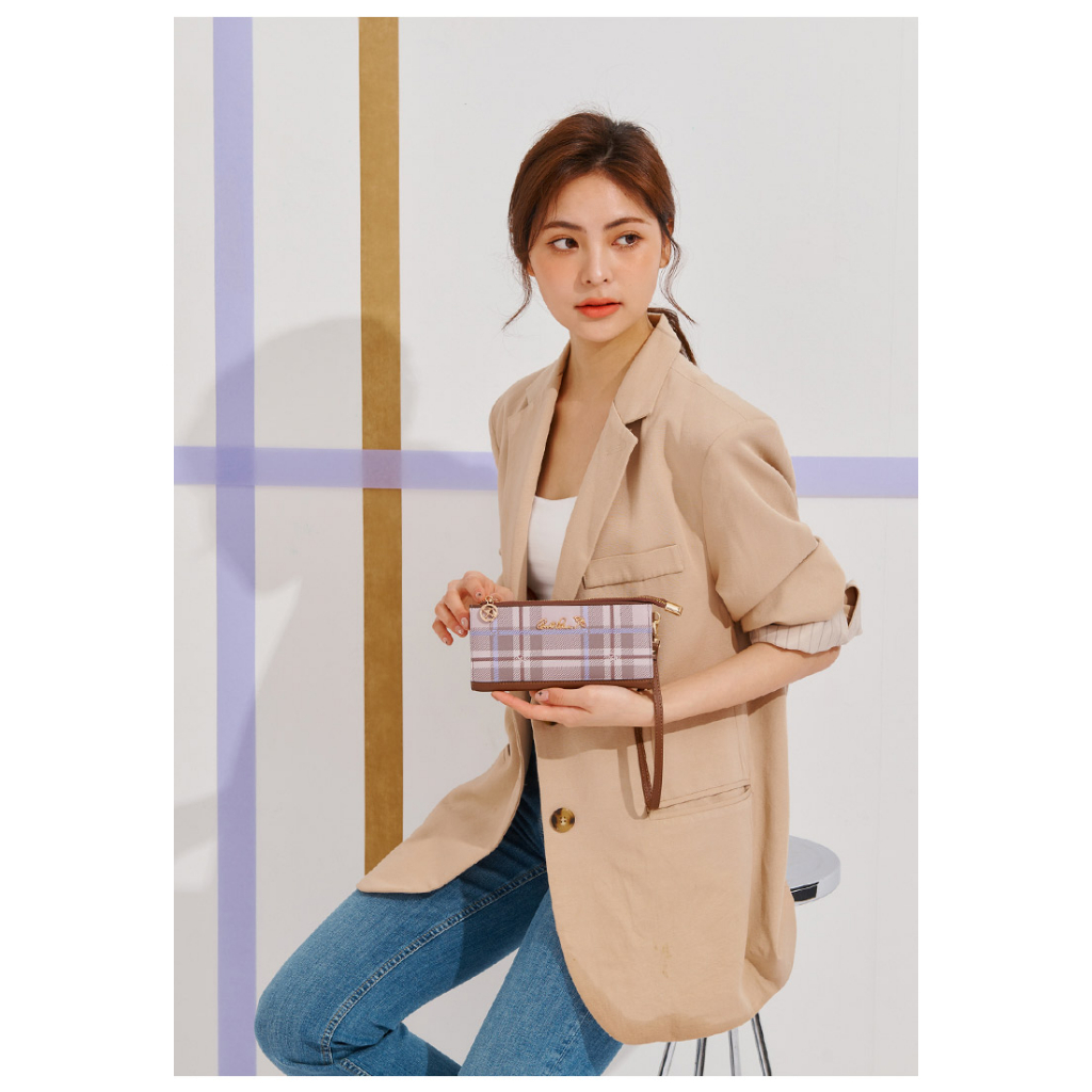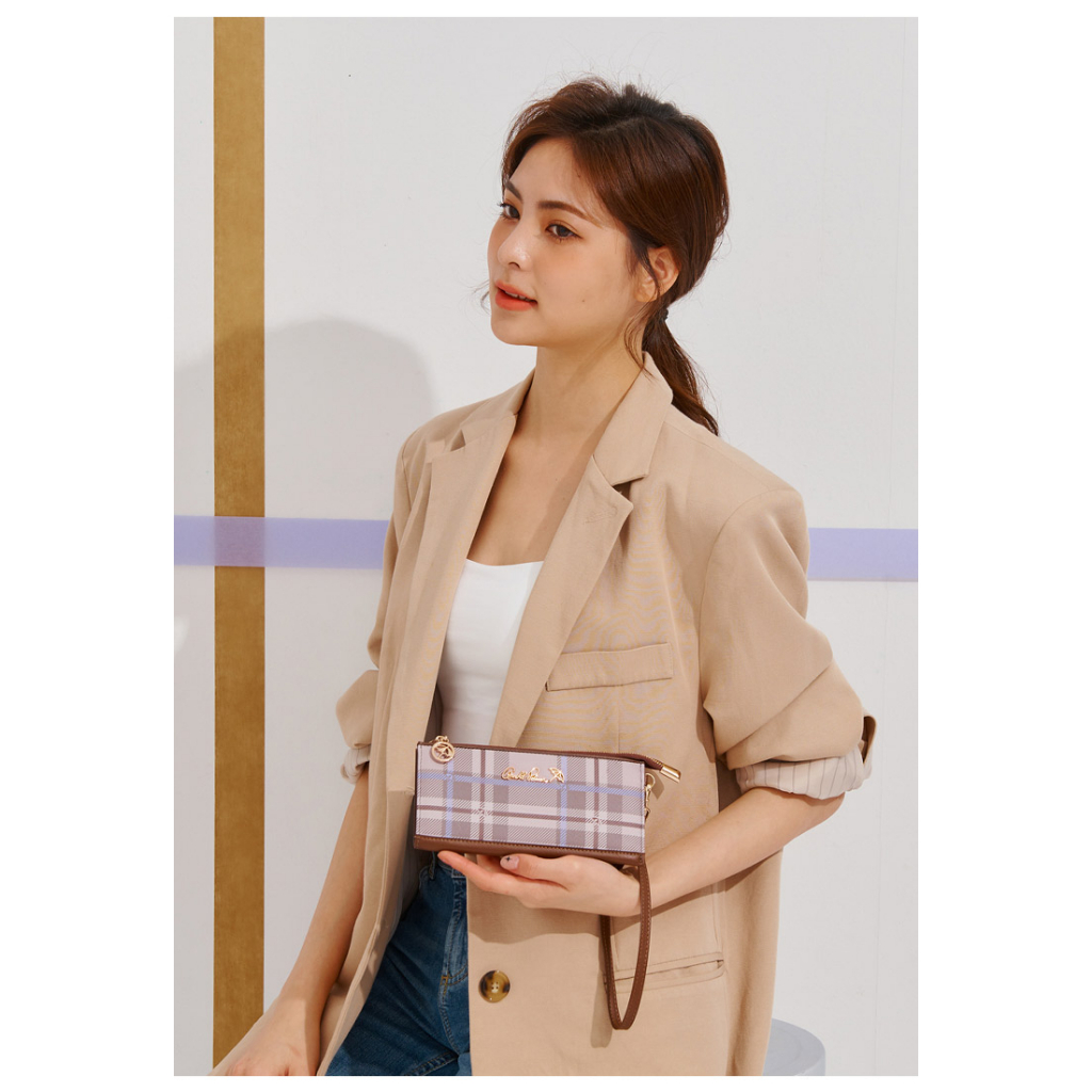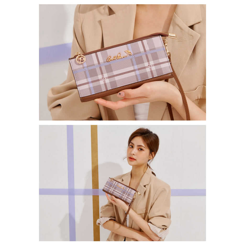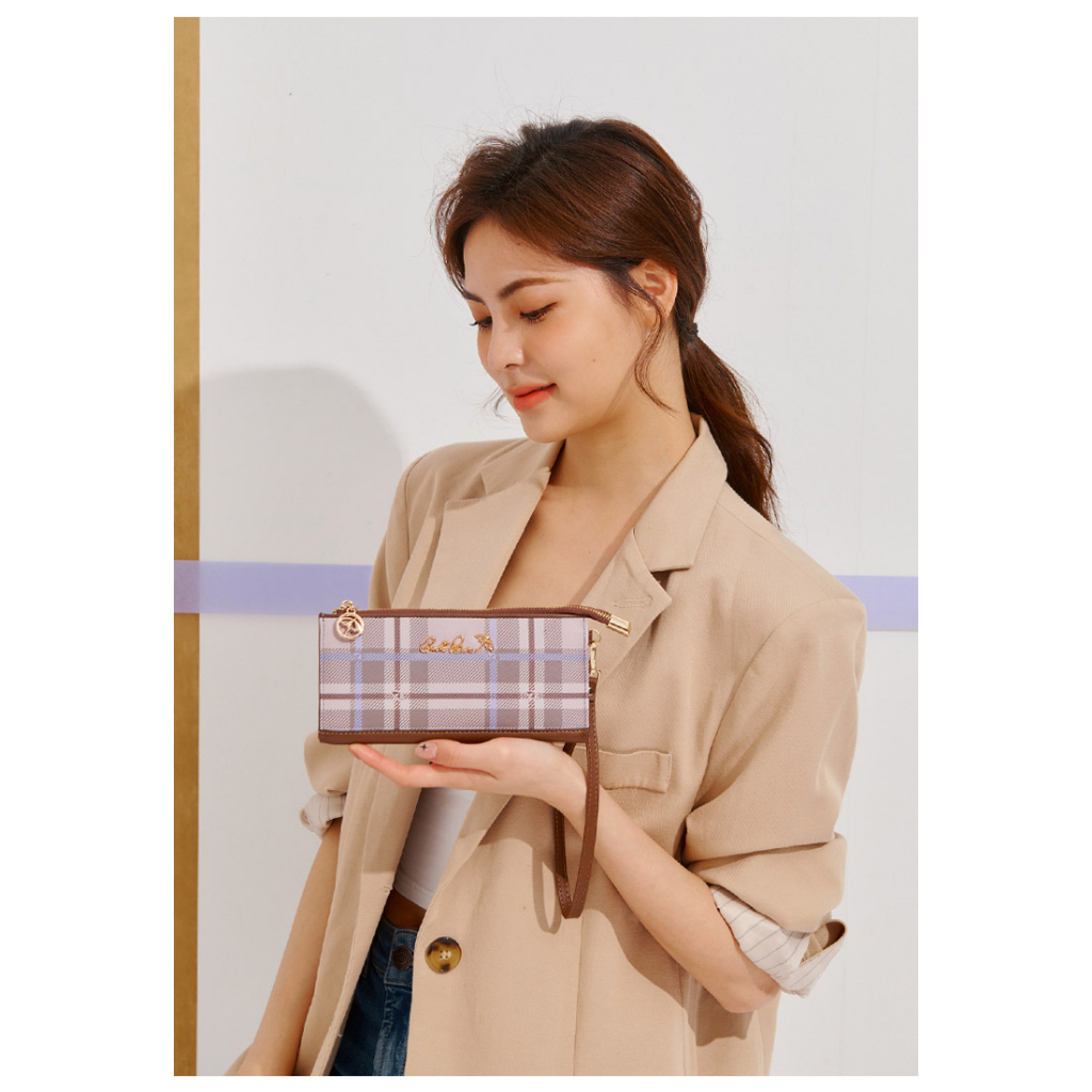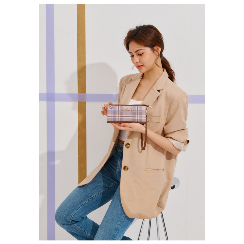 ANNA DOLLY 品牌掌紋真皮拉鍊長夾粉色|藍色|綠色|杏色Long WalletsANNA DOLLY