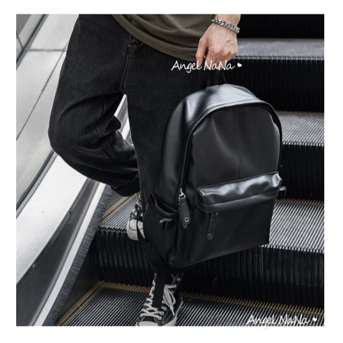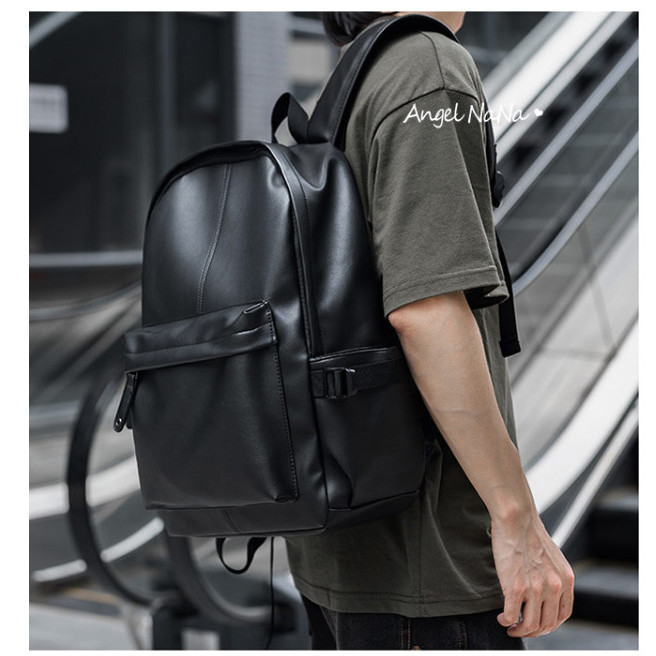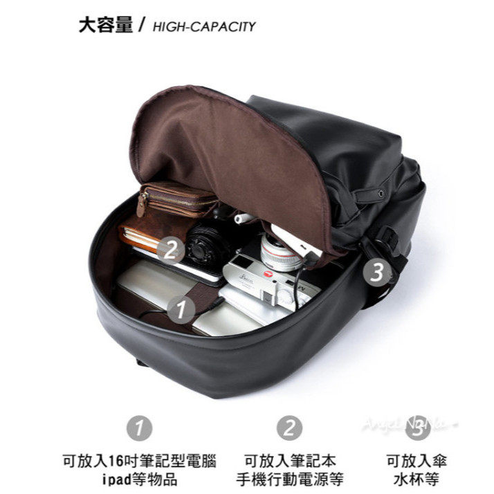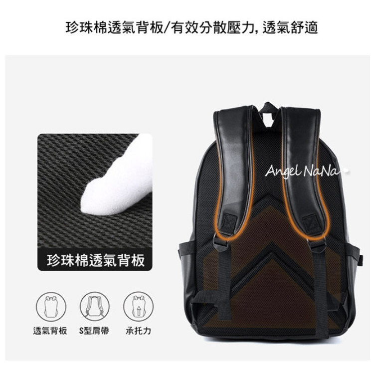 【AngelNaNa】後背包-簡約防潑水皮質16吋減壓電腦包書包(可放A4)(SBA0424)黑色AngelNaNa官方旗艦店
