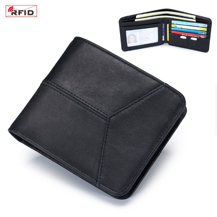 【AngelNaNa】真皮短夾-簡約超薄頭層牛皮RFID防盜刷男皮夾(SMA0405)