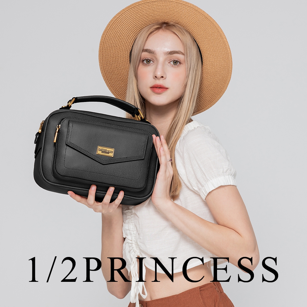 1/2princess油蠟皮革保齡球肩背包【F1005】黑|白1/2princess
