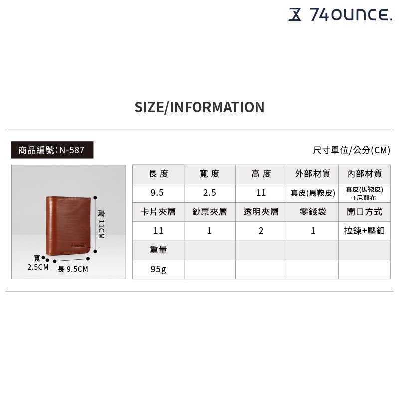 74ounce Classic 植鞣革直式中夾[N-621-CL-T]現貨棕咖|棕Bifold & Trifold Wallets74ounce