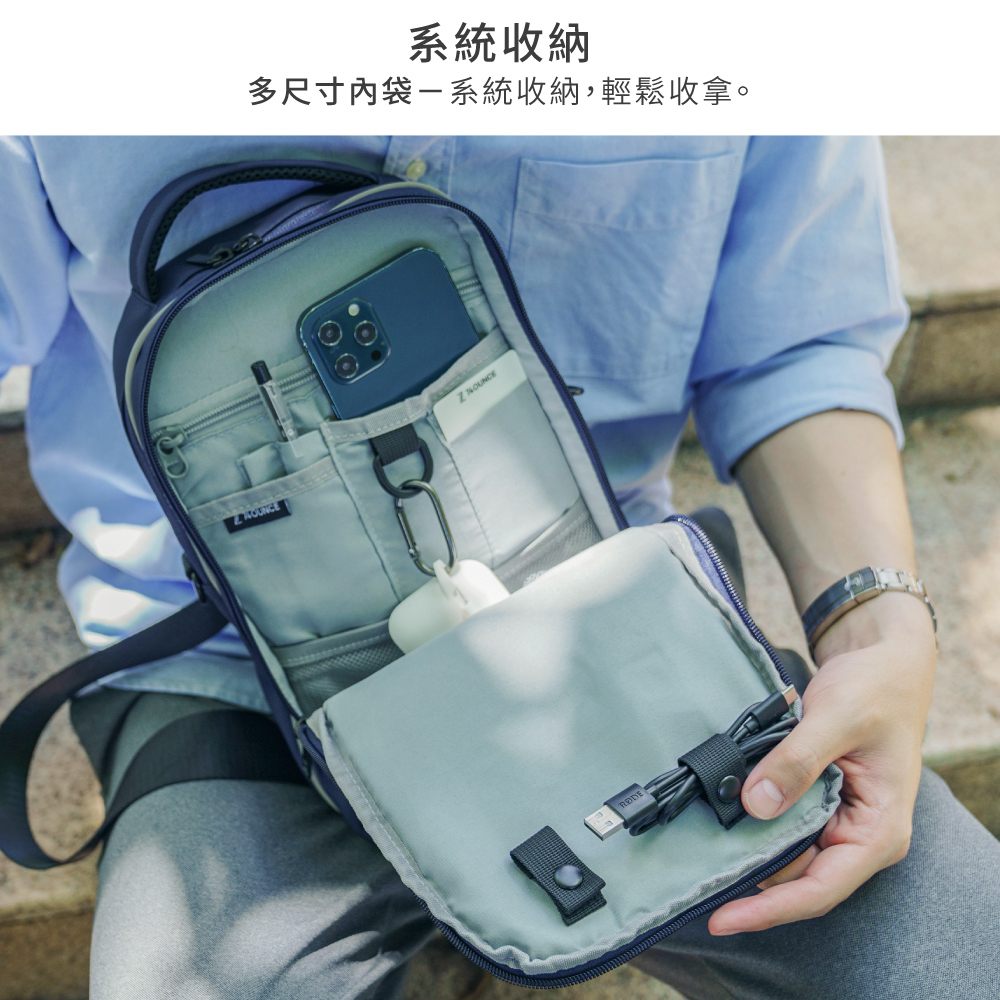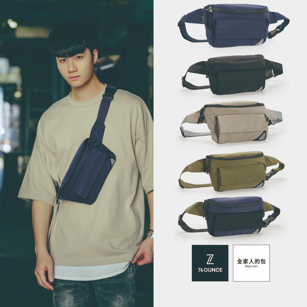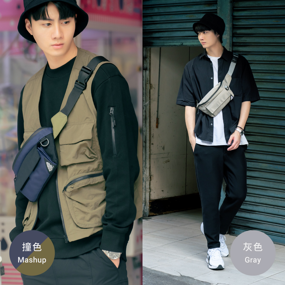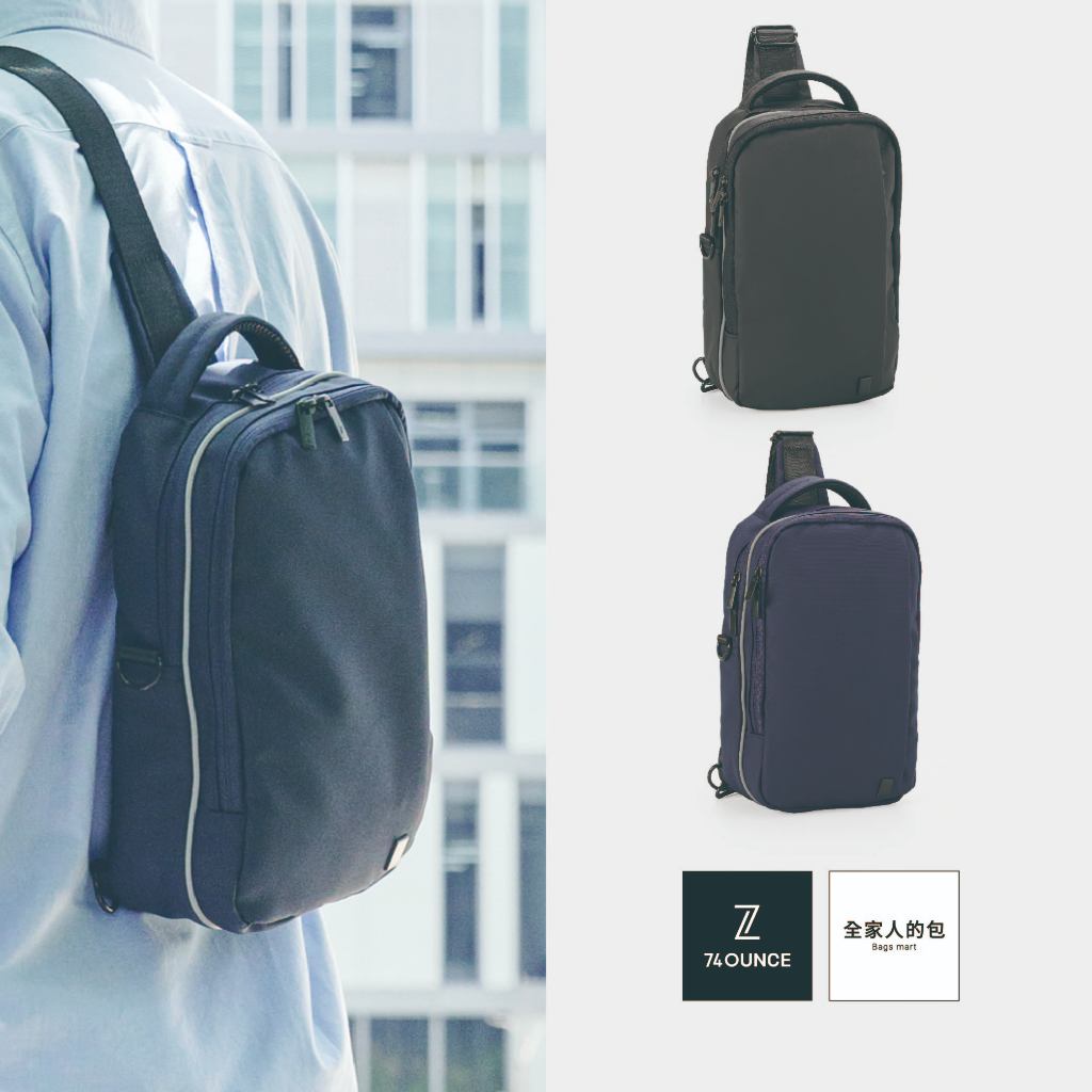 74ounce PACER 多夾層橫式胸包男生斜背包休閒防水百搭[G-1085-PA-M]現貨撞色撞色款|灰74ounce