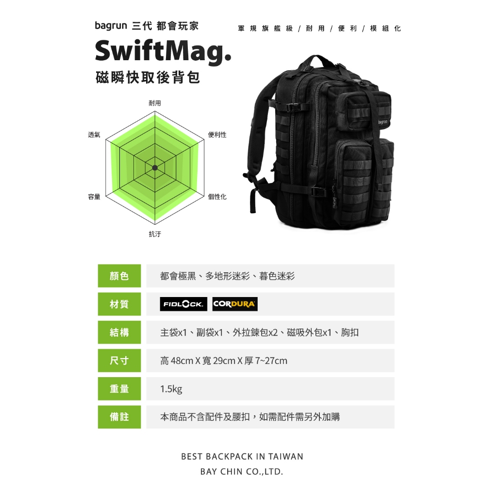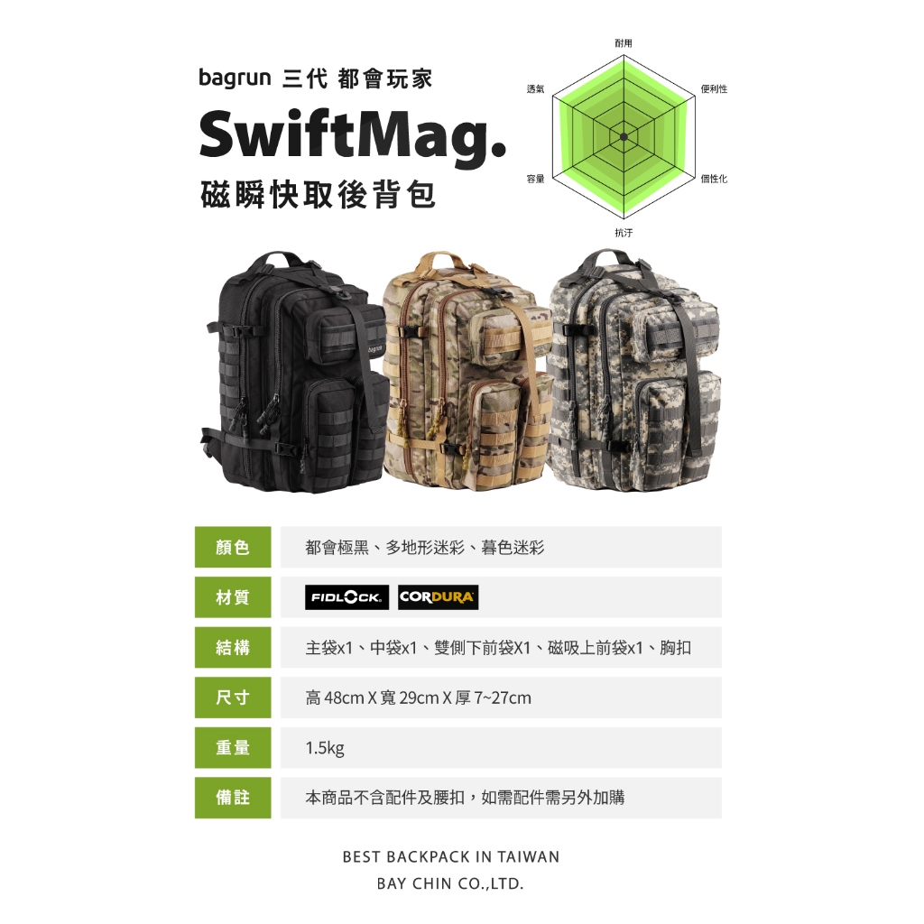bagrun 三代都會玩家磁瞬快取後背包 戰術背包 Molle系統背包 軍規背包 CORDURA背包 SwiftMag多地形迷彩|暮色迷彩|都會極黑bagrun機能設計