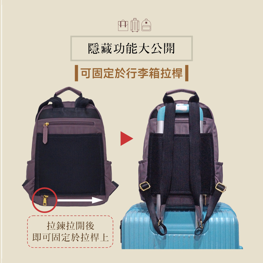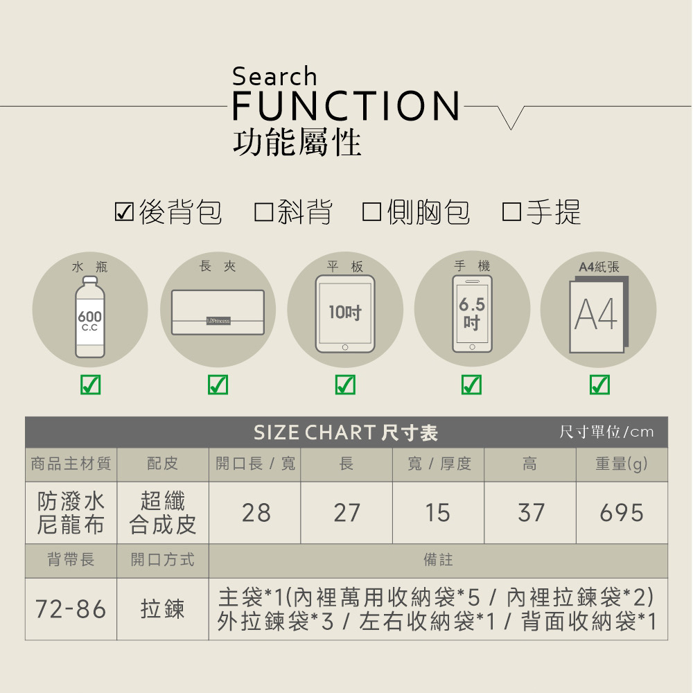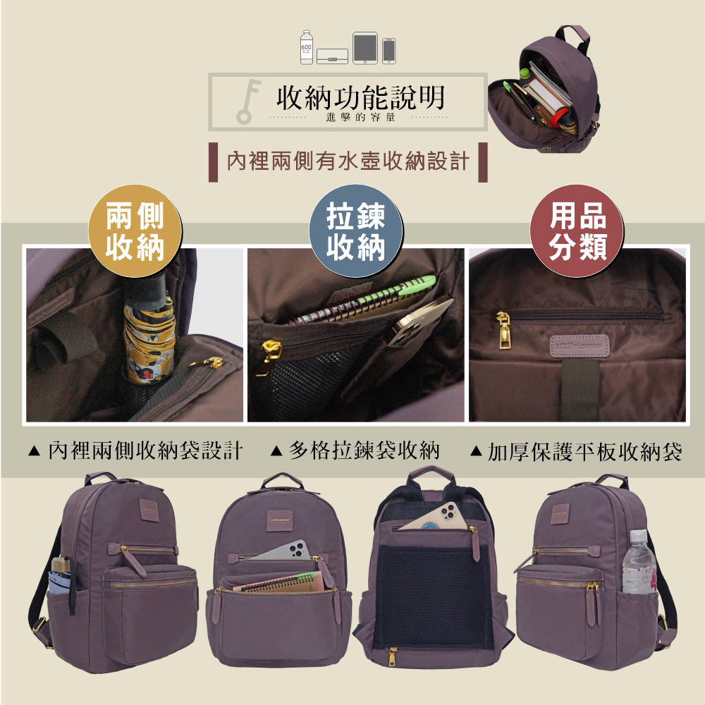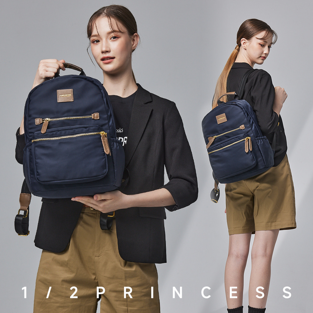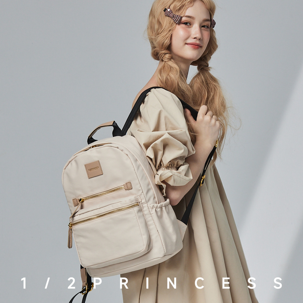 1/2Princess尼龍防潑水大容量多拉鍊設計款後背包-5色【A2784-1】深藍-無貨勿下單|大象灰|軍綠|黑|冷灰奶|紫墨-無貨勿下單|奶油米白|單寧藍|灰奶可可|芝麻可可-無貨勿下單1/2princess