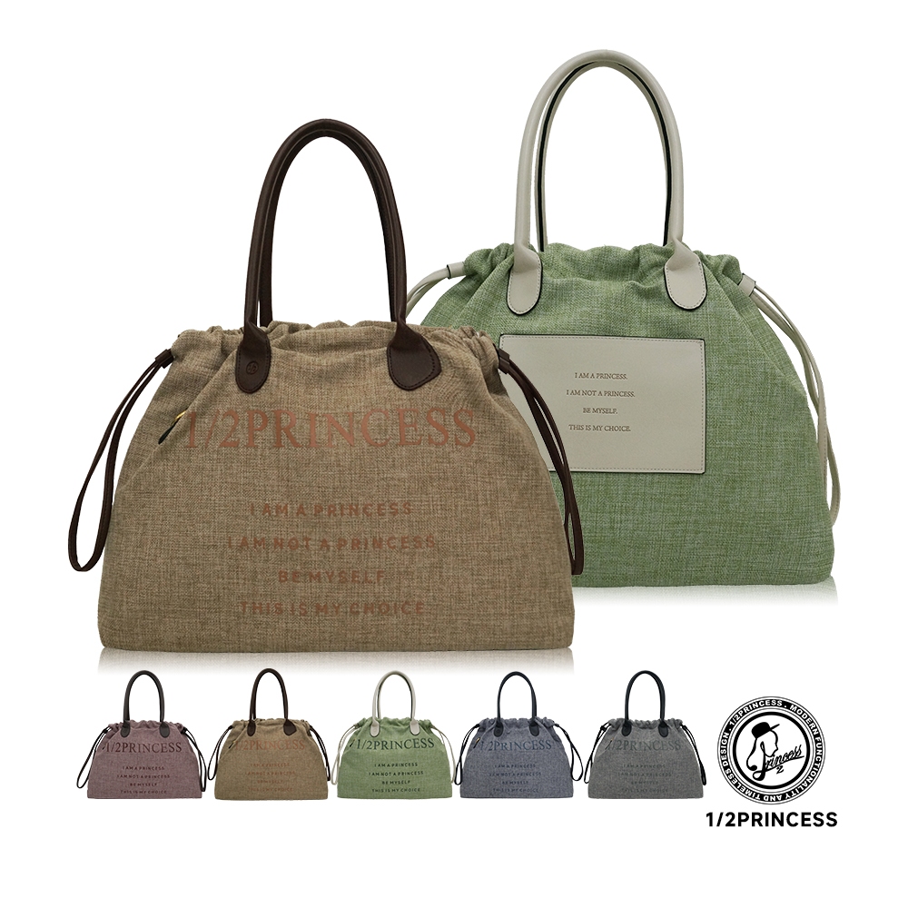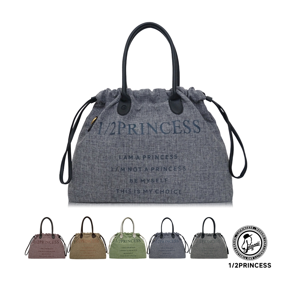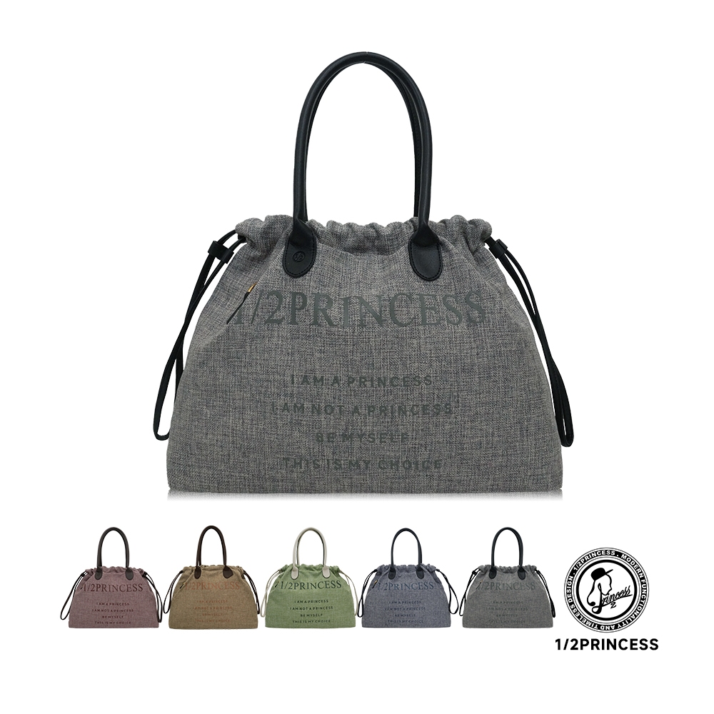 1/2Princess亞麻大束口肩背包【FB1001】深灰|酒紅|卡其|薄荷綠|淺灰1/2princess