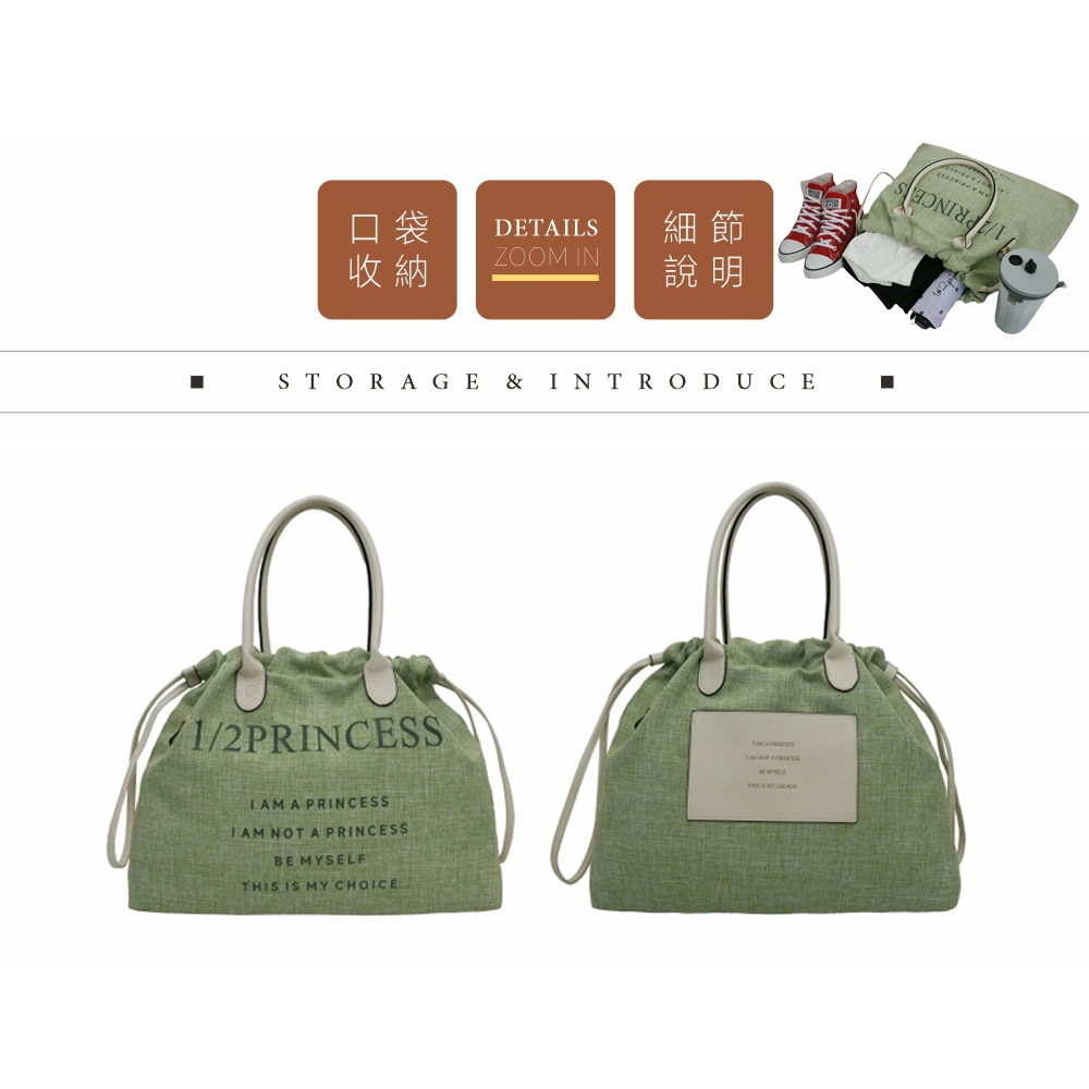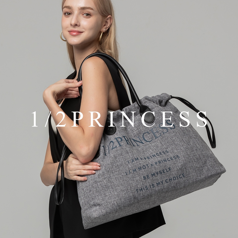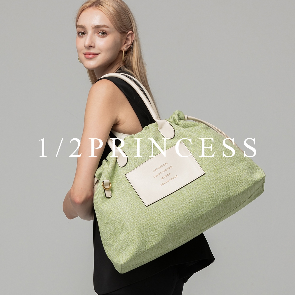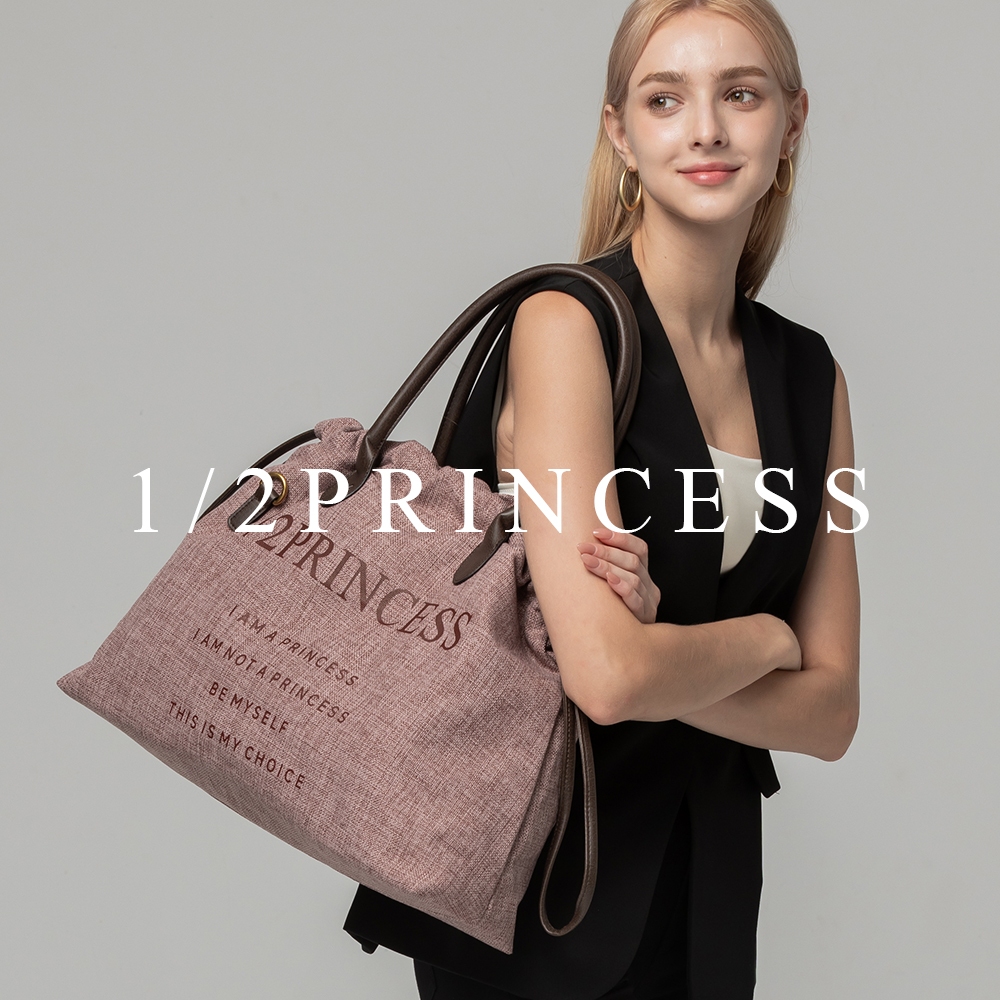1/2Princess亞麻大束口肩背包【FB1001】深灰|酒紅|卡其|薄荷綠|淺灰1/2princess