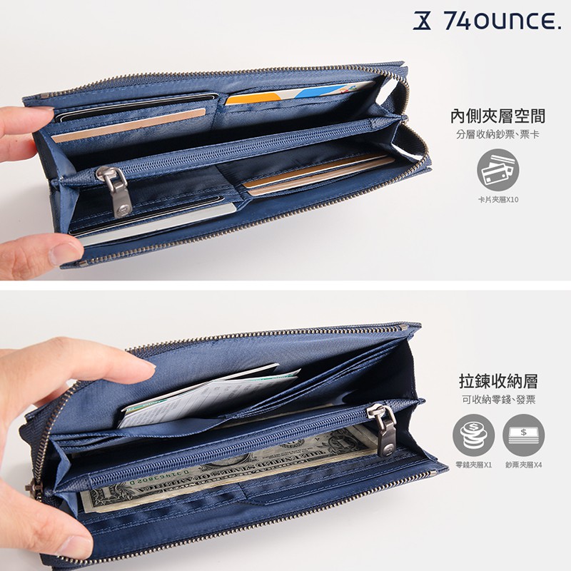 74ounce 皮夾 FIT 時尚手拿拉鍊長夾[N-508]黑|藍Long Wallets74ounce