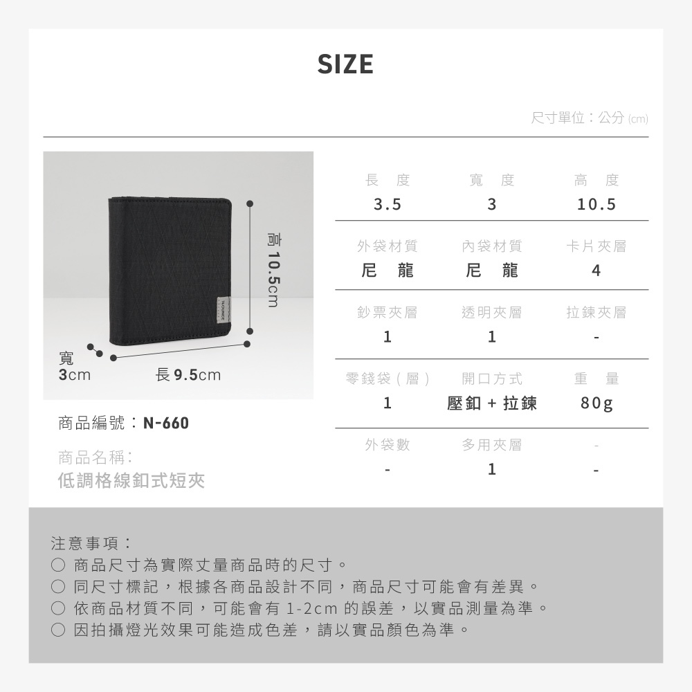 低調格線釦式短夾[N-660-Q2-M]岩綠|深藍|黑Bifold & Trifold Wallets74ounce