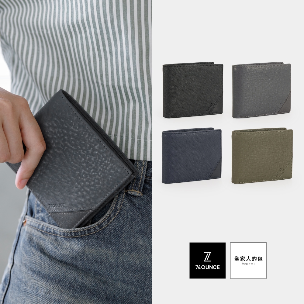 74ounce 截角十字紋多卡短夾[N-654-Q1-M]現貨黑色黑Bifold & Trifold Wallets74ounce