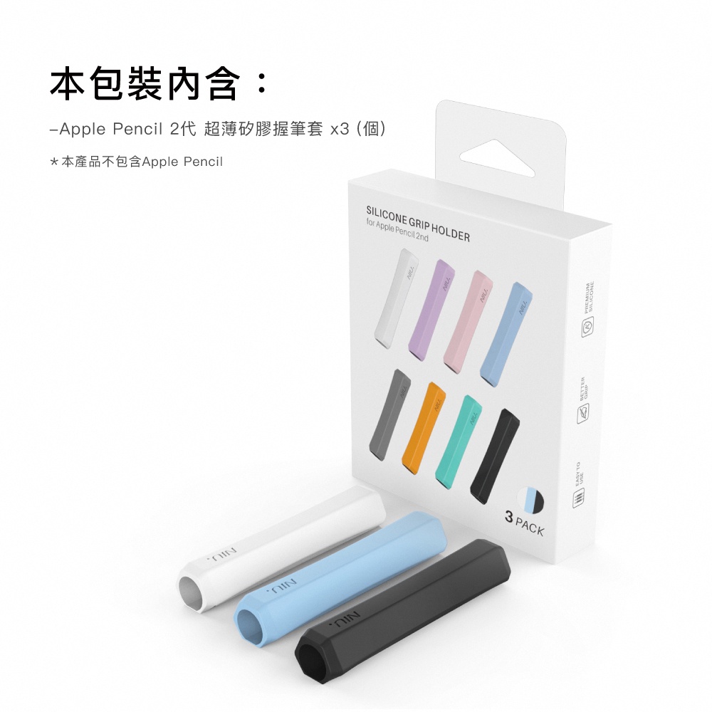 AHAStyle Apple Pencil 增強手感 不影響觸控充電 矽膠握筆套 (三組入)【官方旗艦店】白+藍+黑|白+灰+黑|白+紫+粉|白+橘+黑OthersAHAStyle 官方旗艦店