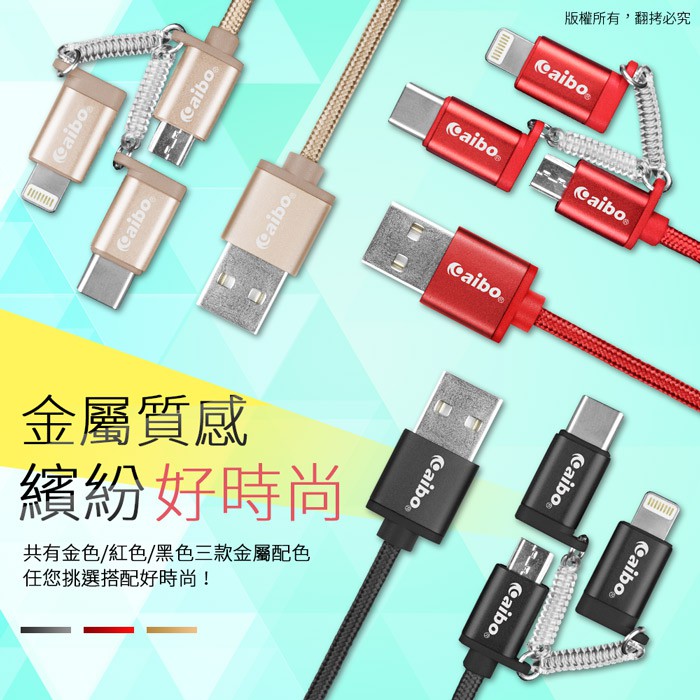 aibo 三合一鋁合金快充線 1.5M【現貨】多合一充電線 蘋果 安卓 TypeC 充電傳輸線 一拖三充電線黑色|紅色Cables, Chargers & Convertersaibo 3C生活館