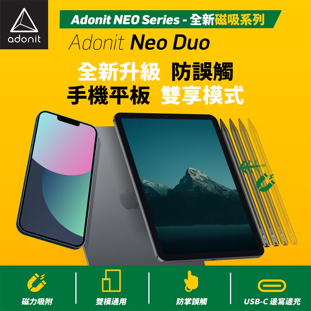 【Adonit】Neo Duo 全新磁吸觸控筆 iPad&iPhone通用 – 石墨黑/消光銀石墨黑|消光銀StylusAdonit 美國觸控筆旗艦店