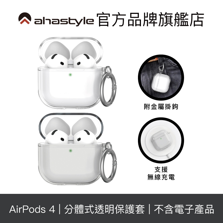 AHAStyle AirPods 4代 分體款透明保護殼 防摔保護套(附防丟掛鉤)透明黑色|透明白色Wearable AccessoriesAHAStyle 官方旗艦店