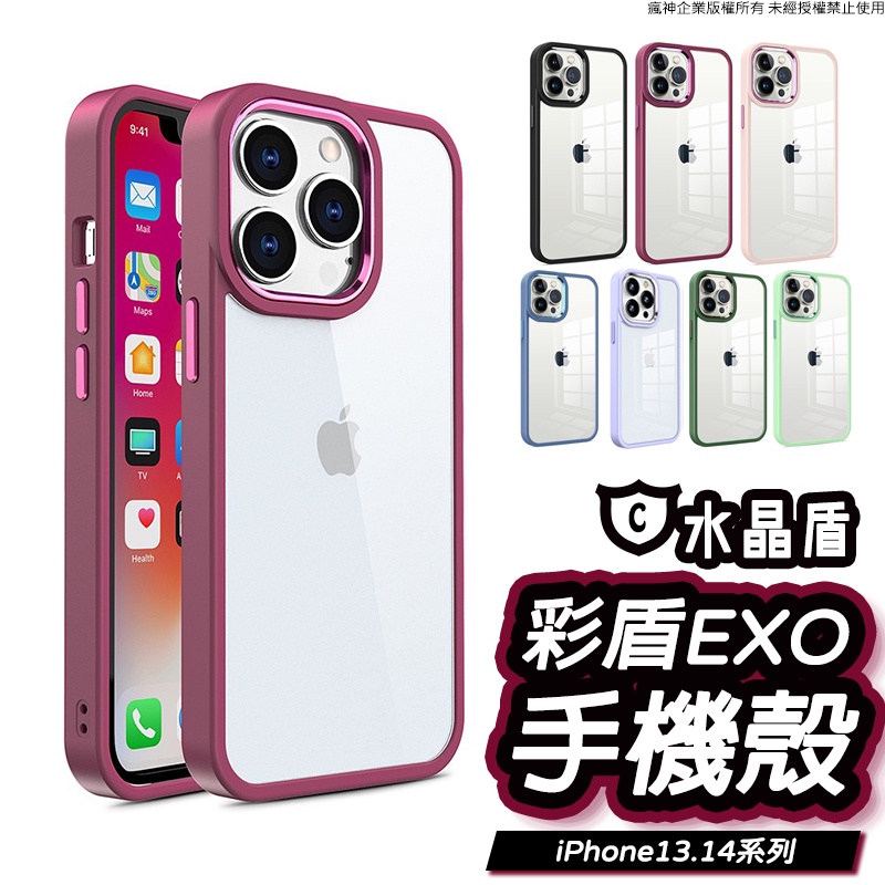 • 彩盾EXO iPhone 14 13 金屬鷹眼透明背板手機殼 液態親膚 透明 防摔殼 適用於 14 13 Pro Max