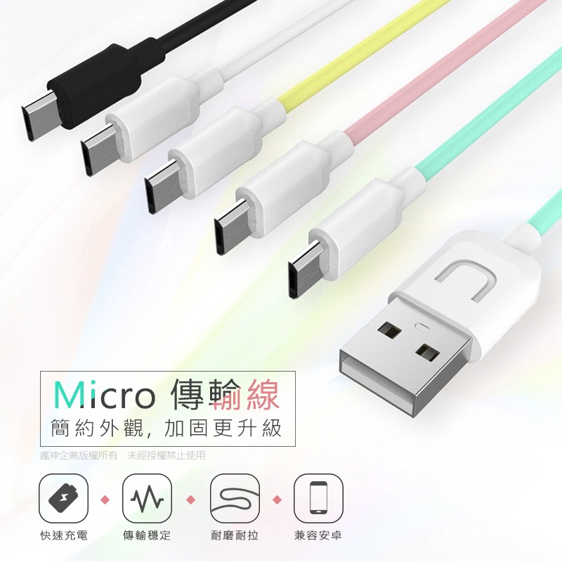 炫彩2A快充Micro安卓充電線 傳輸線 Micro to USB 安卓線粉色|青色|黃色|白色|黑色Cables, Chargers & Converters【ANYGO】水晶盾 經銷批發旗鑑商城|最專業的手機保護貼配件
