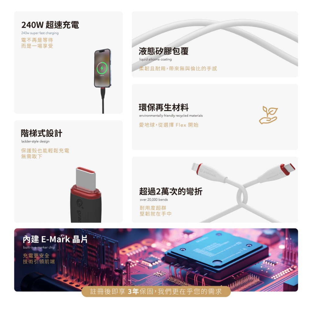 • 【GC】充滿希望 Type-C to Type-C / Lightning 240W 液態矽膠充電線