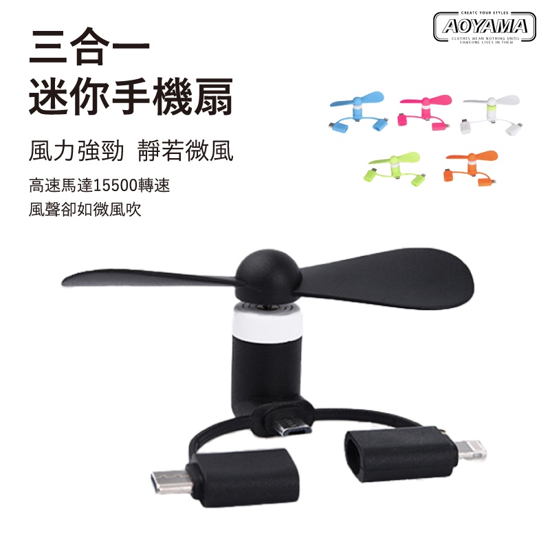 AOYAMA 三合一 輕便型 手機電風扇【AF36】蘋果/安卓(Type-Cµ USB) 三接頭AOYAMA 三合一 輕便型 手機電風扇【AF36】蘋果/安卓(Type-Cµ USB) 三接頭USB & Mobile Fansaoyama_store