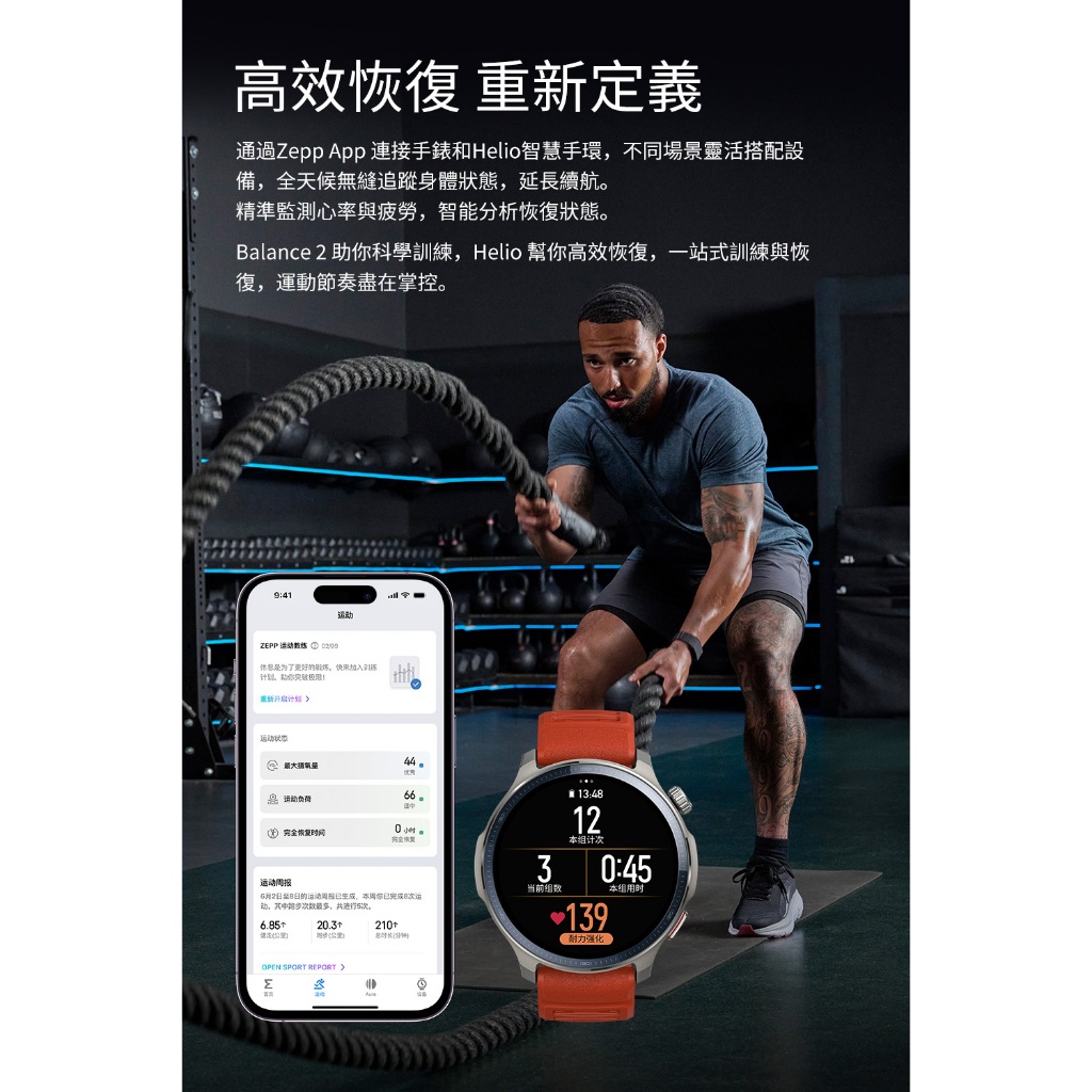 Amazfit Helio 智慧手環 身體電量/24小時即時心率監測/力量訓練自動識別/Zepp App一站式管理