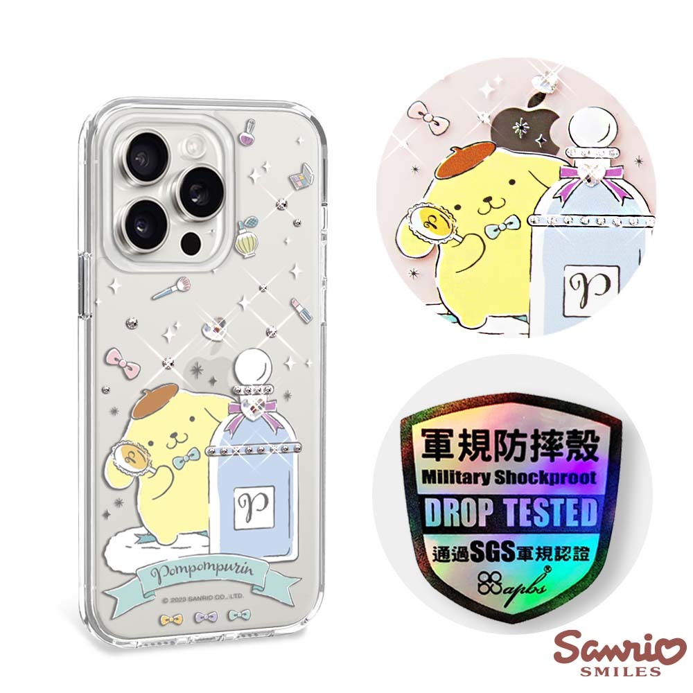三麗鷗 iPhone 16/15/14/13/12/11系列 輕薄軍規防摔水晶彩鑽手機殼-香水布丁狗