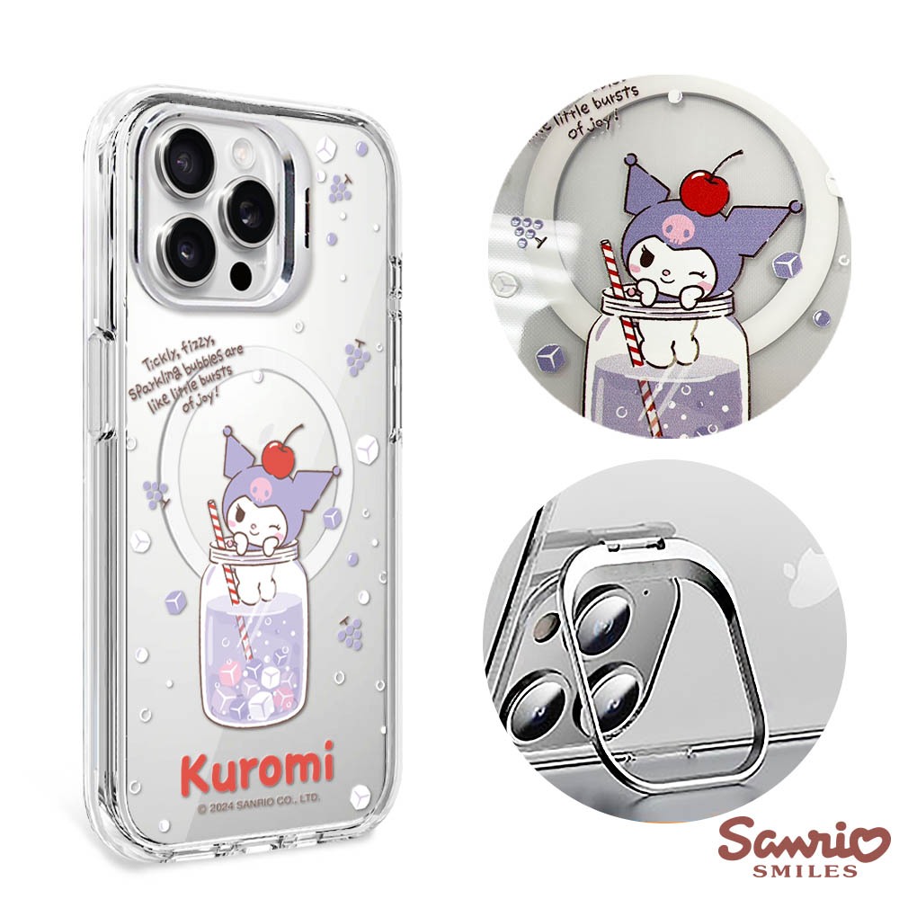• 三麗鷗 iPhone 16/15/14/13/12/S25系列 防震雙料隱形立架磁吸手機殼-汽水酷洛米