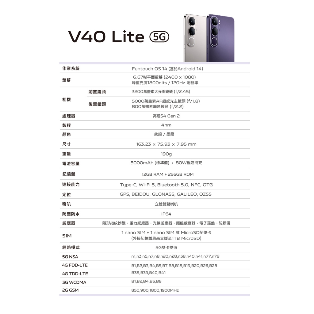 vivo V40 Lite 12G+256G【送側翻皮套+滿版玻璃保貼-內附保護套】6.67吋 5G智慧手機墨黑|鈦銀3C雲購物網