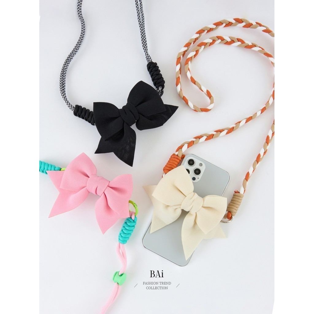 BAi白媽媽 蝴蝶結背夾掛繩/少女手機夾斜背帶-台灣現貨 隔日到貨【346170】黑(02)|橘(09)|粉(13)Phone Straps & KeychainsBAi白媽媽 品牌旗艦店