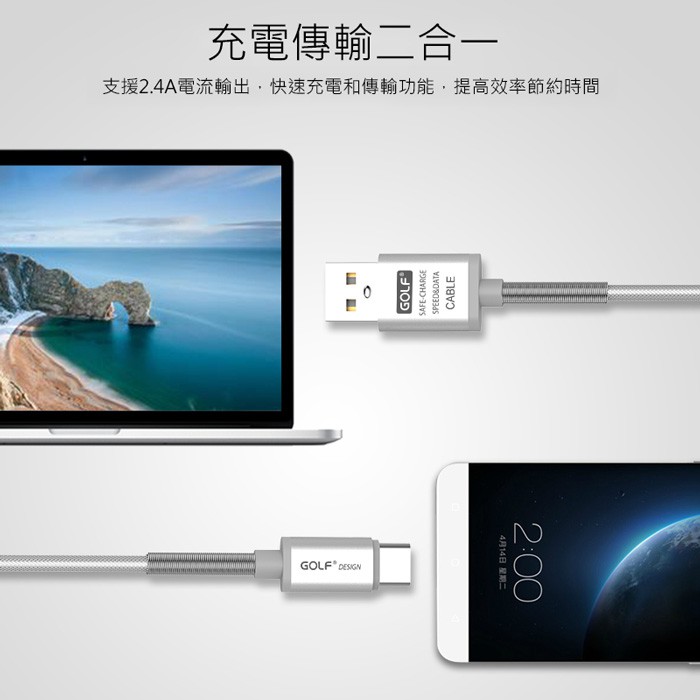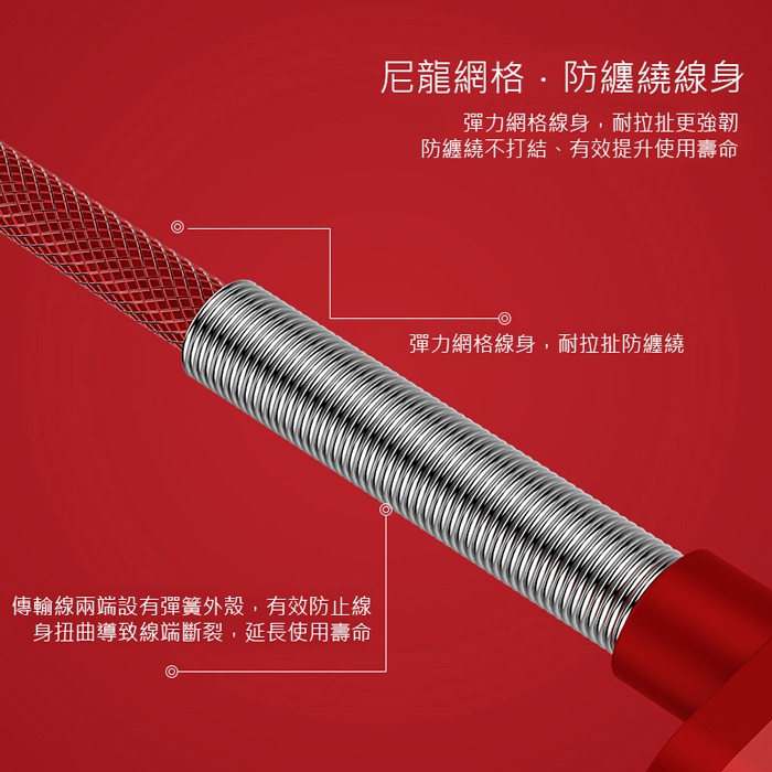 Type-C 鋁合金尼龍充電線2.4A 紅色【現貨】充電線 充電傳輸線 Type-C充電線紅色Cables, Chargers & Convertersaibo 3C生活館