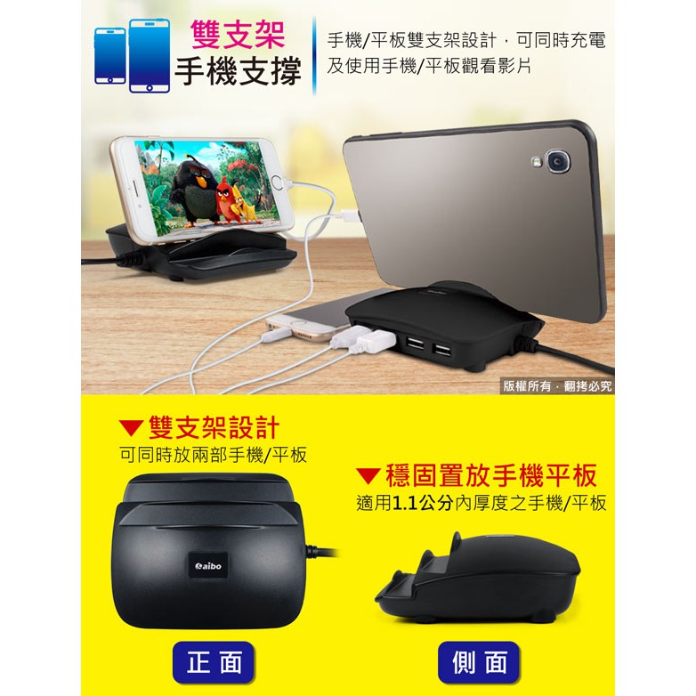 aibo 充電/支架 二合一 4孔USB帶線充電器 4埠 5A 充電器 USB充電器 手機充電器 手機支架 【現貨】新品Cables, Chargers & Convertersaibo 3C生活館