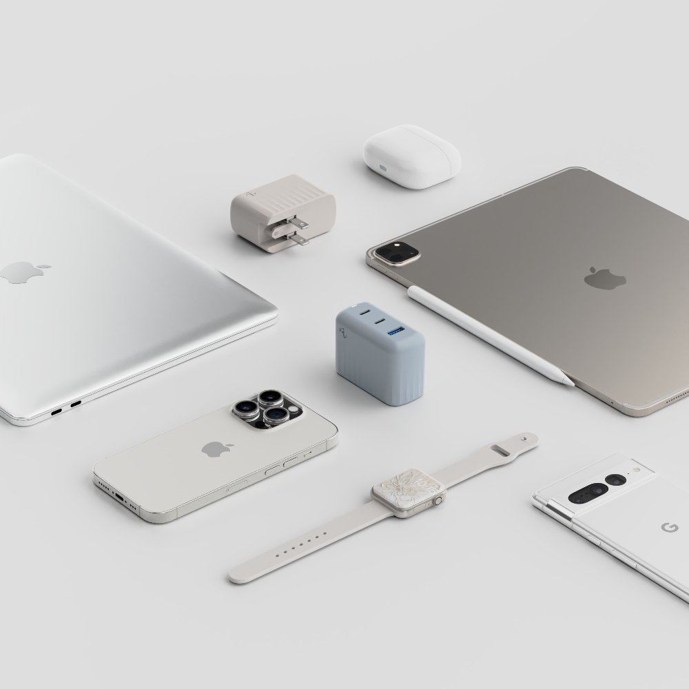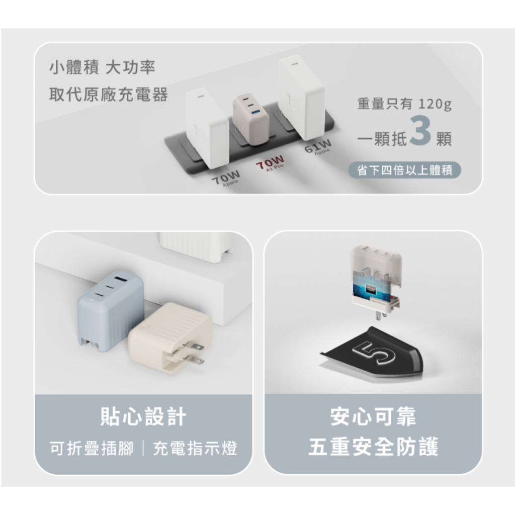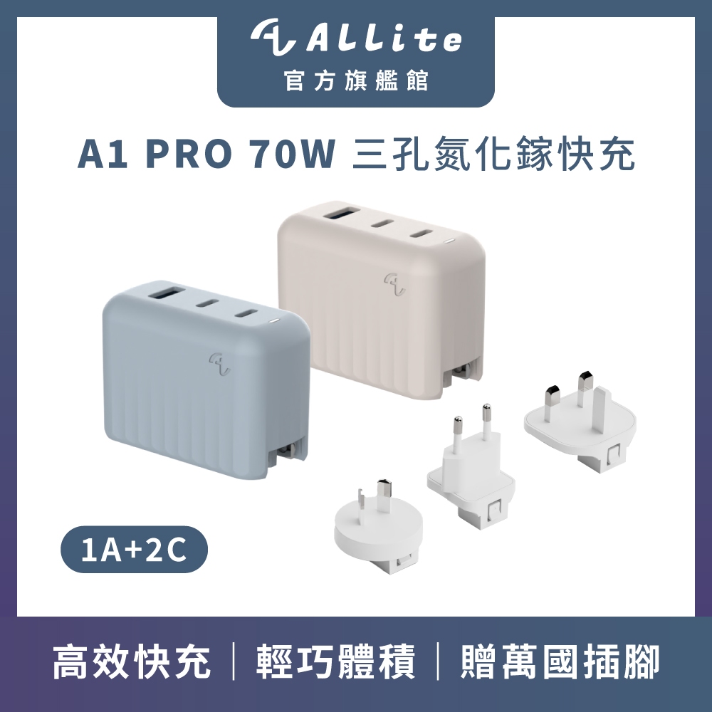 ⚡️快速出貨⚡️Allite A1 PRO 70W 1A+2C 氮化鎵三孔快充|附萬國轉接頭霧霾藍|淺灰褐Cables, Chargers & ConvertersAllite 旗艦館