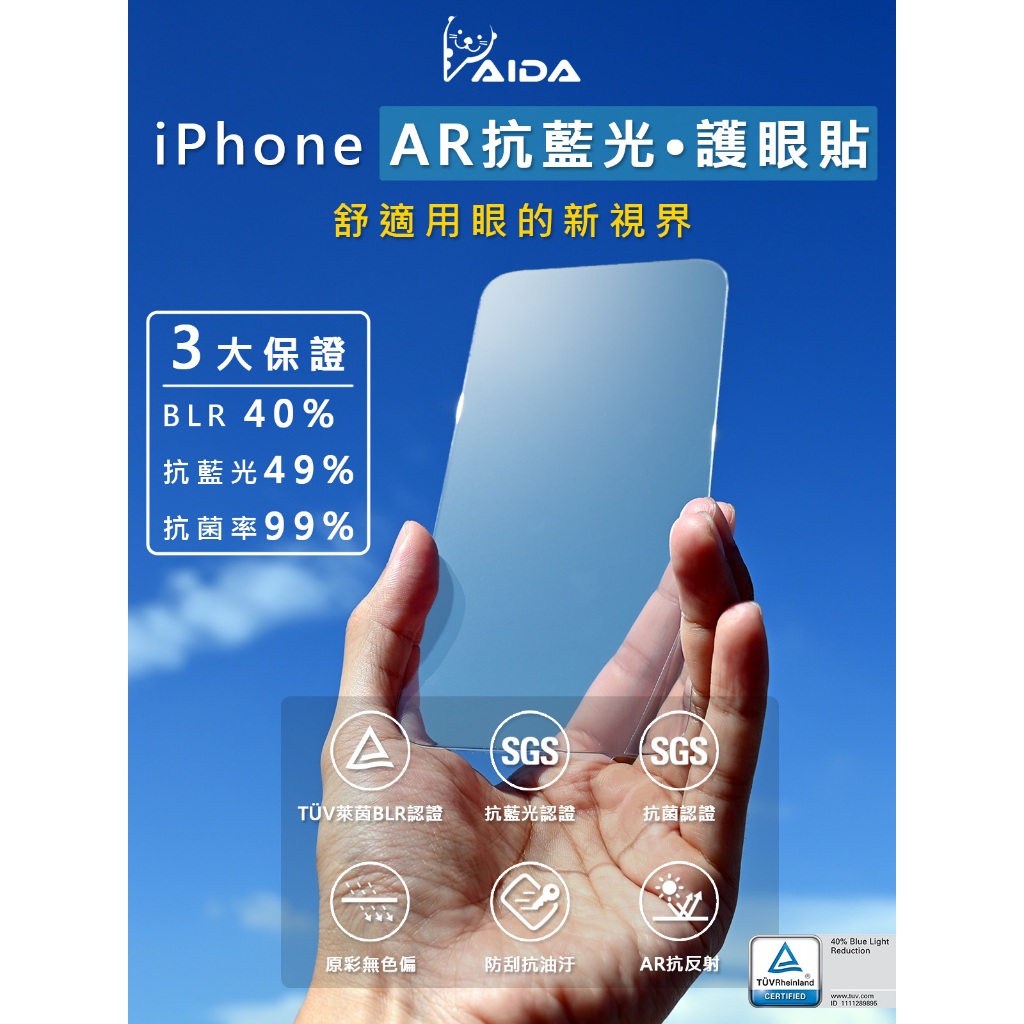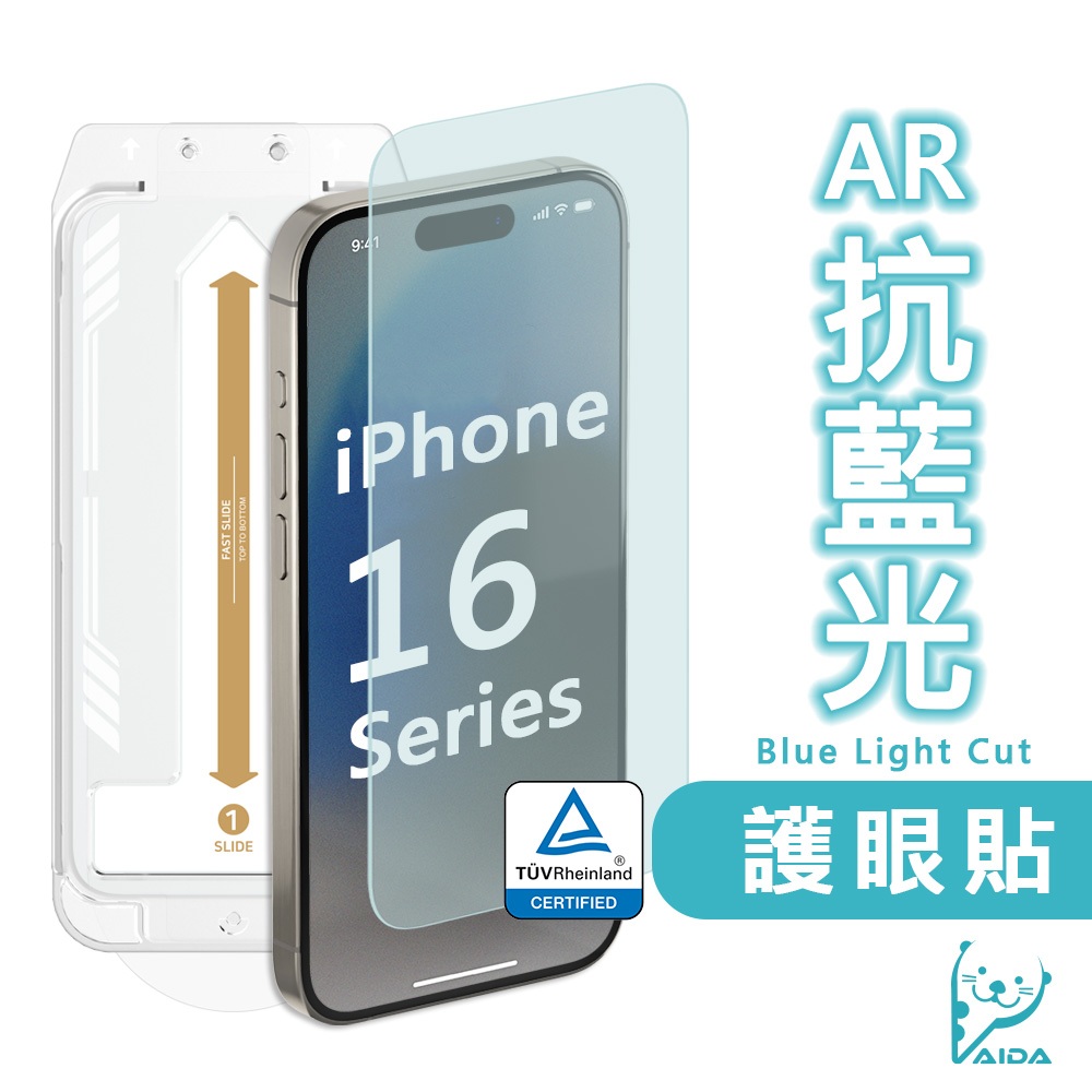 【AIDA】iPhone 16系列 抗藍光保護貼 德國萊茵TÜV BLR40%認證【AR抗反射│無黑iPhone 16|iPhone 16 Plus|iPhone 16 Pro|16 Pro Max|16eScreen ProtectorsAIDA品牌旗艦館-防窺/抗藍光 保護貼專賣