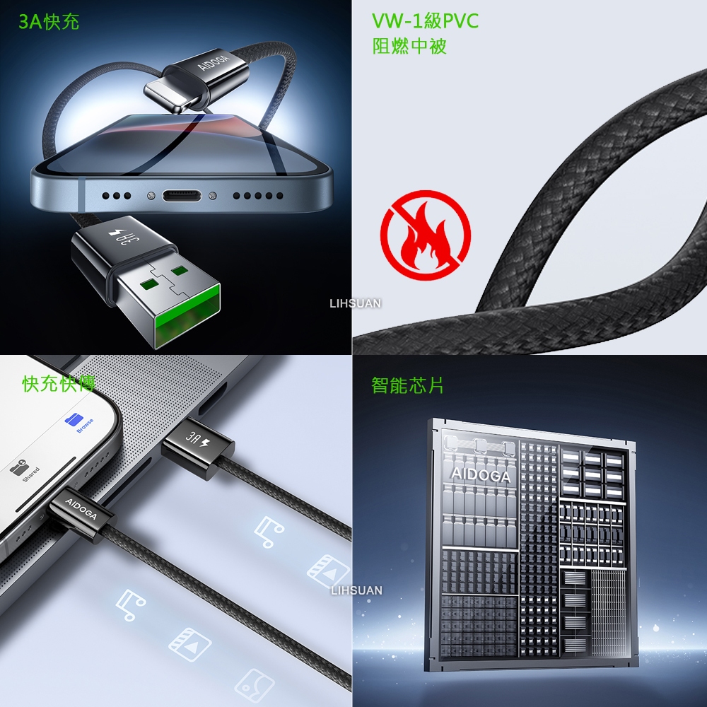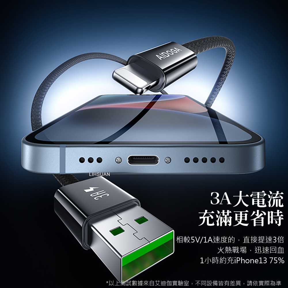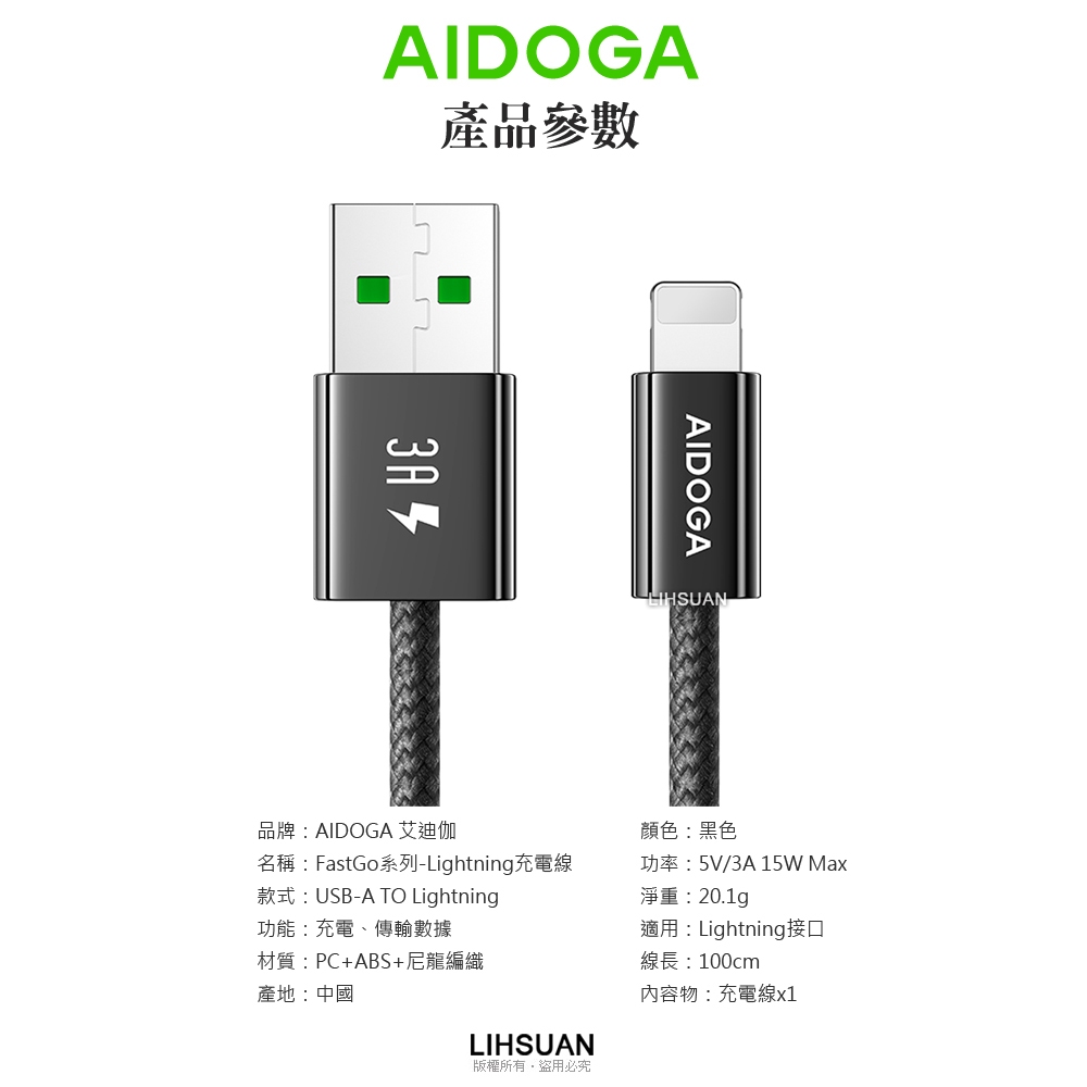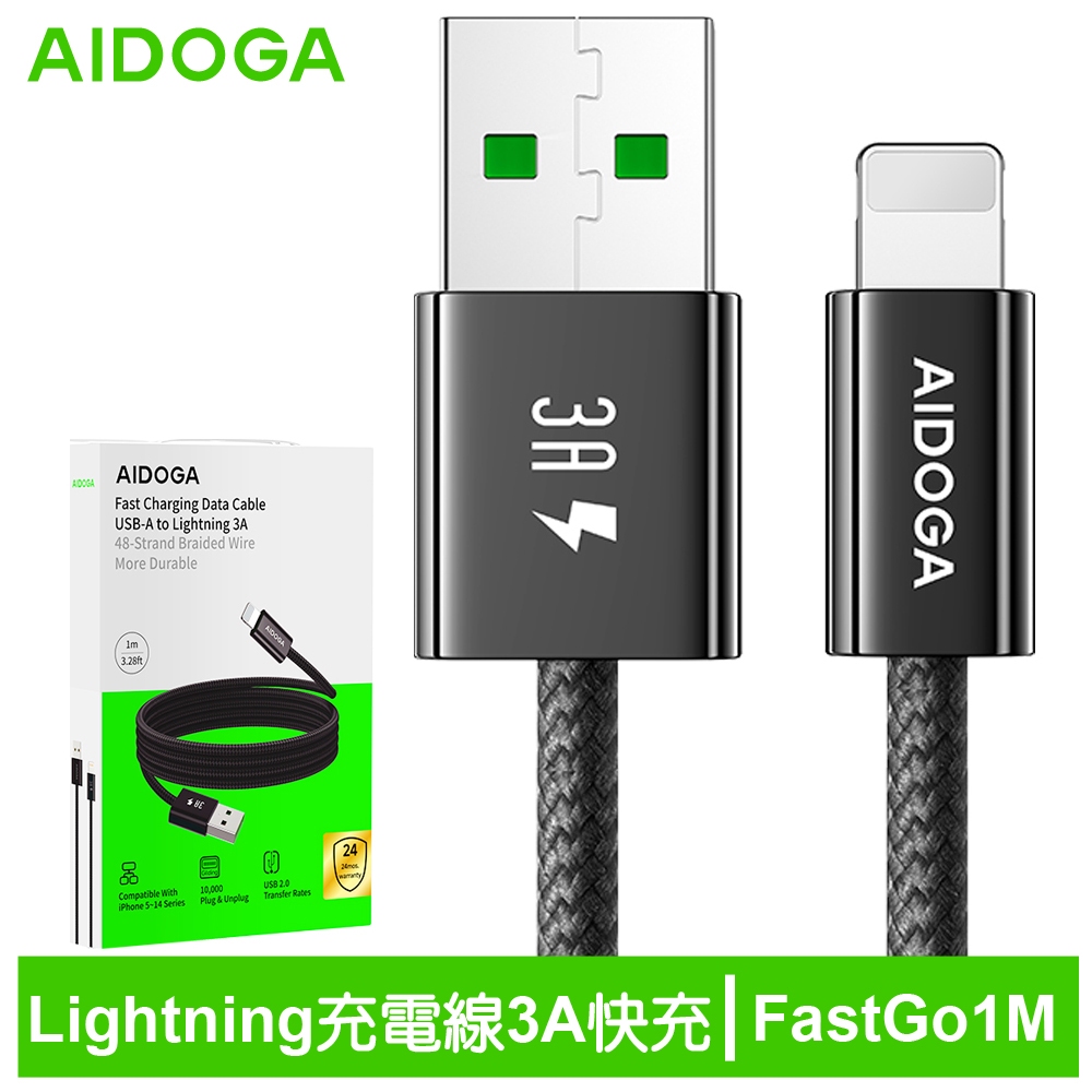 AIDOGA 艾迪伽 iPhone/Lightning充電線傳輸線編織線快充線 3A快充 FastGo系列 1M黑色Cables, Chargers & ConvertersAIDOGA 艾迪伽官方旗艦店