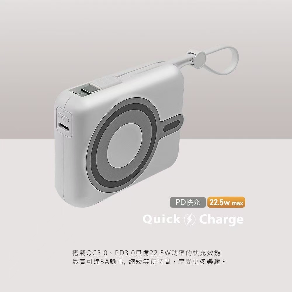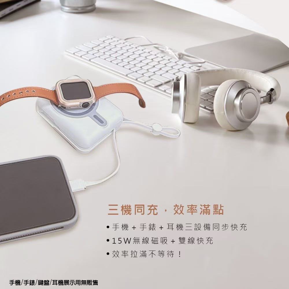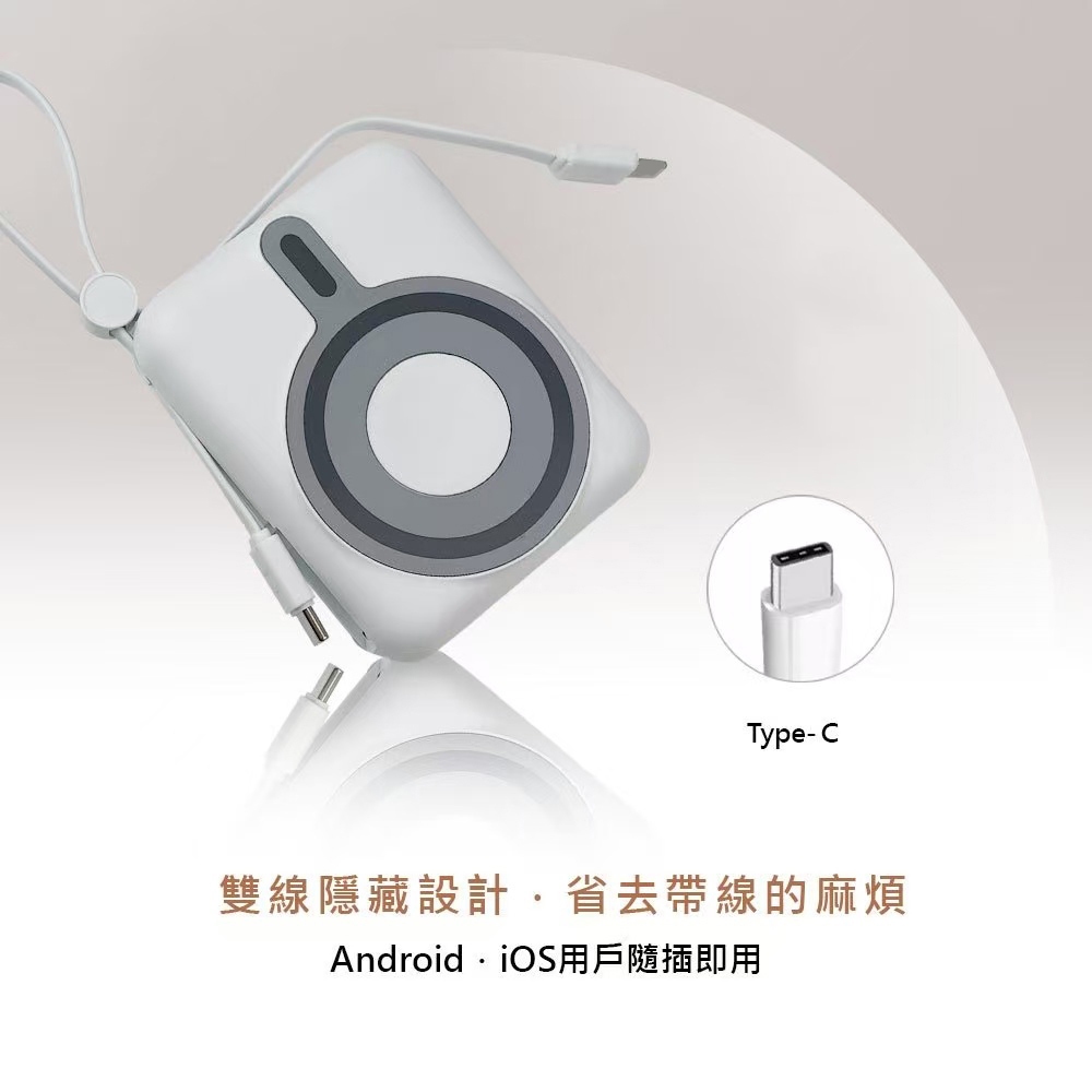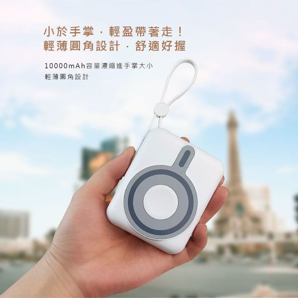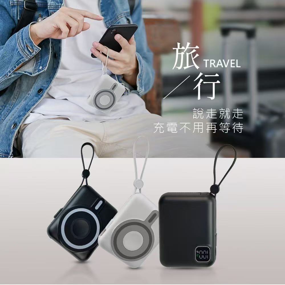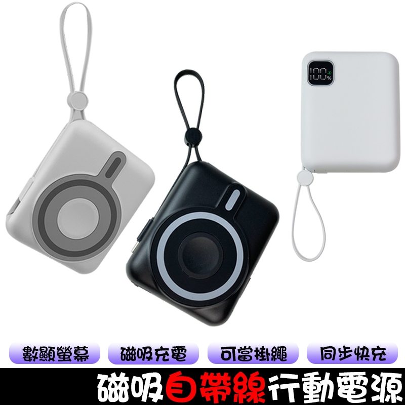 磁吸自帶線行動電源 行動充 無線充電行動電源 數顯行動充 適用iPhone/安卓 支援MagSafe磁吸 掛繩行動電源白色|黑色Powerbanks & BatteriesADHIL旗艦店