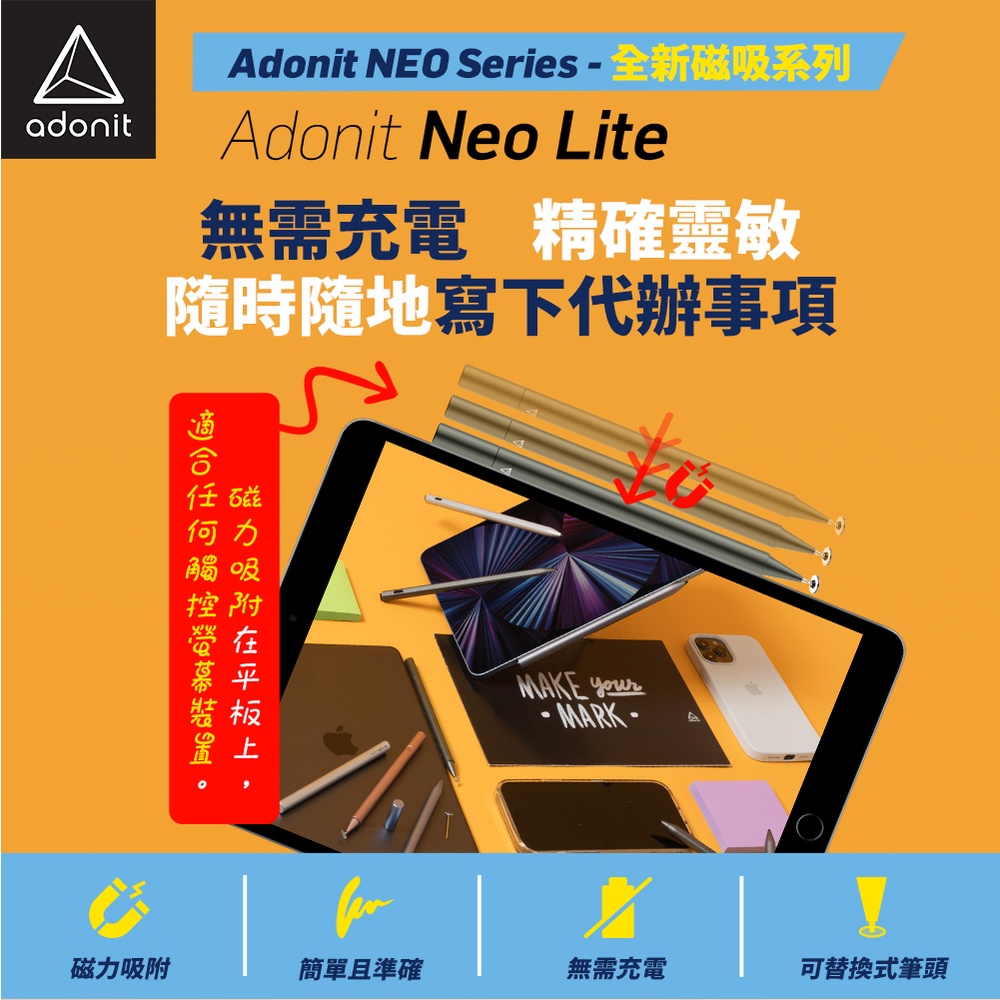 【Adonit】Neo Lite 全新磁吸系列 美國專利碟片 商務級觸控筆 – 石墨色/消光銀石墨黑|消光銀StylusAdonit 美國觸控筆旗艦店