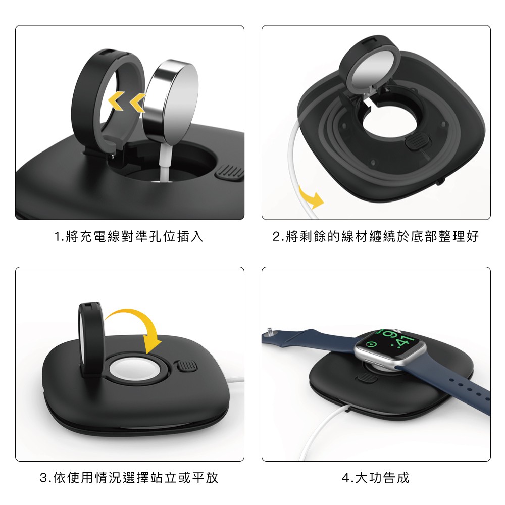 AHAStyle Apple Watch 充電器收納底座 可捲收充電線 旅行便攜充電集線底座【官方旗艦店】黑色Wearable AccessoriesAHAStyle 官方旗艦店