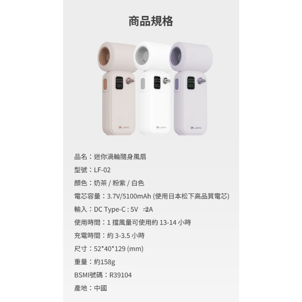 【LaPO】迷你渦輪隨身高速風扇 LF-02 日本松下電芯 5100mAh 電量顯示 百段風速 授權經銷商奶茶色|粉紫色|白色USB & Mobile Fans3C SHOP 數位生活